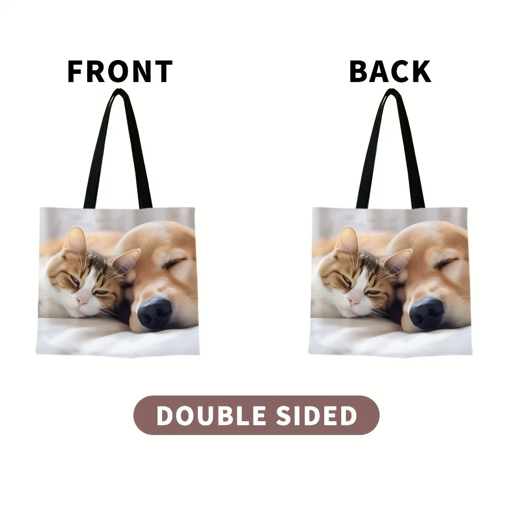 Custom Photo Tote Bag Personalized Reusable Grocery Shopping Shoulder Bag with Foldable Design Polyester Storage Pouch