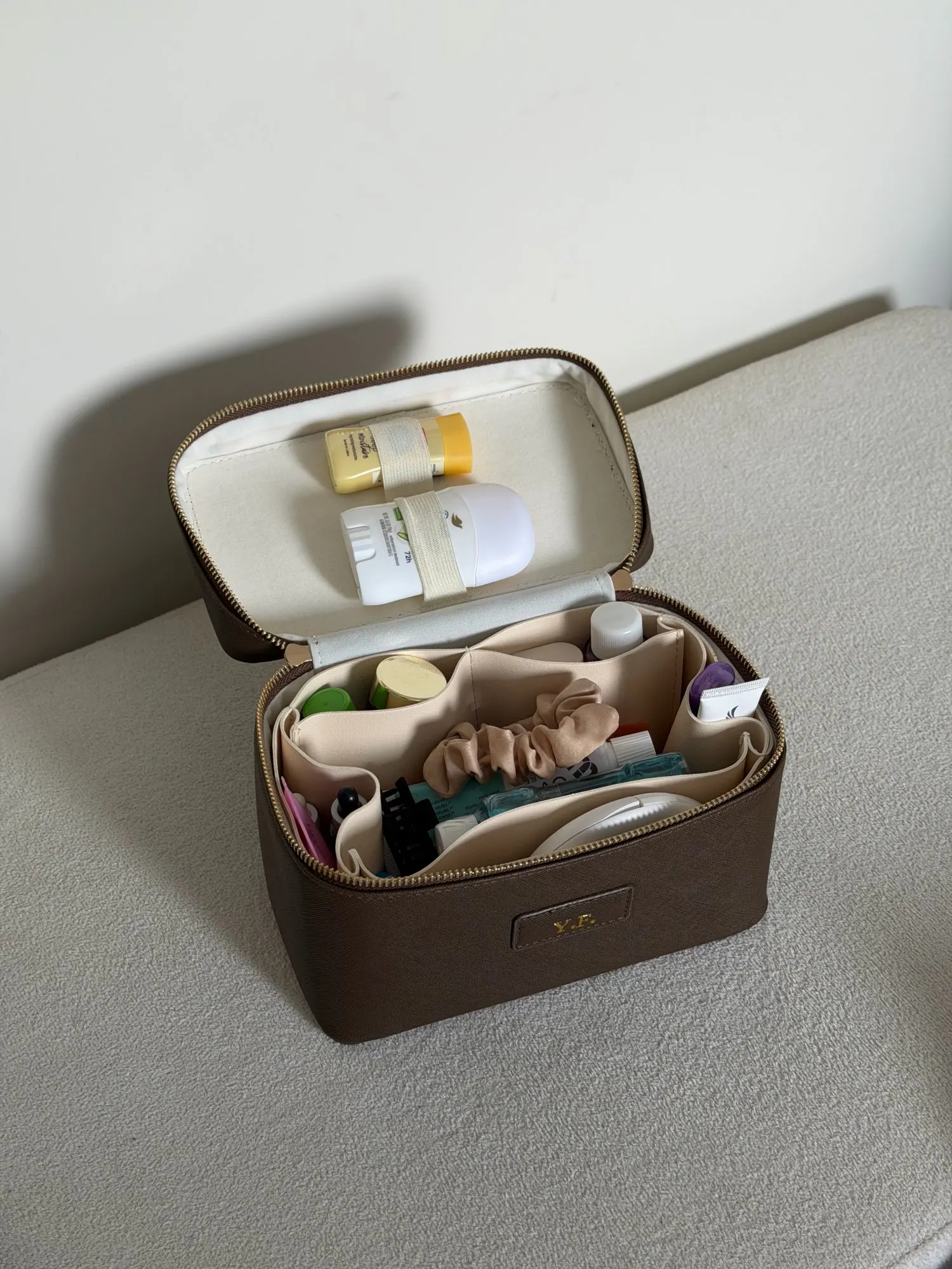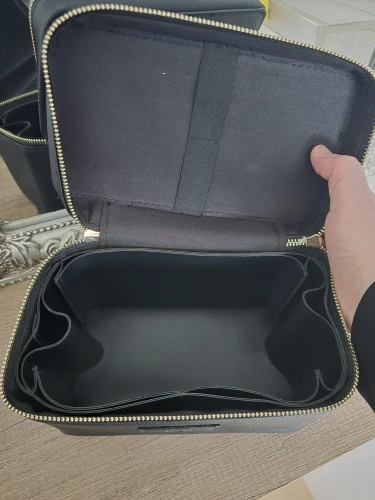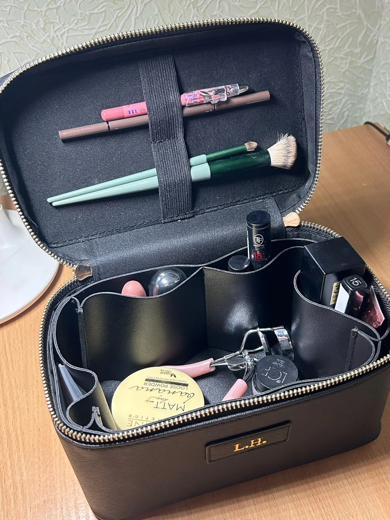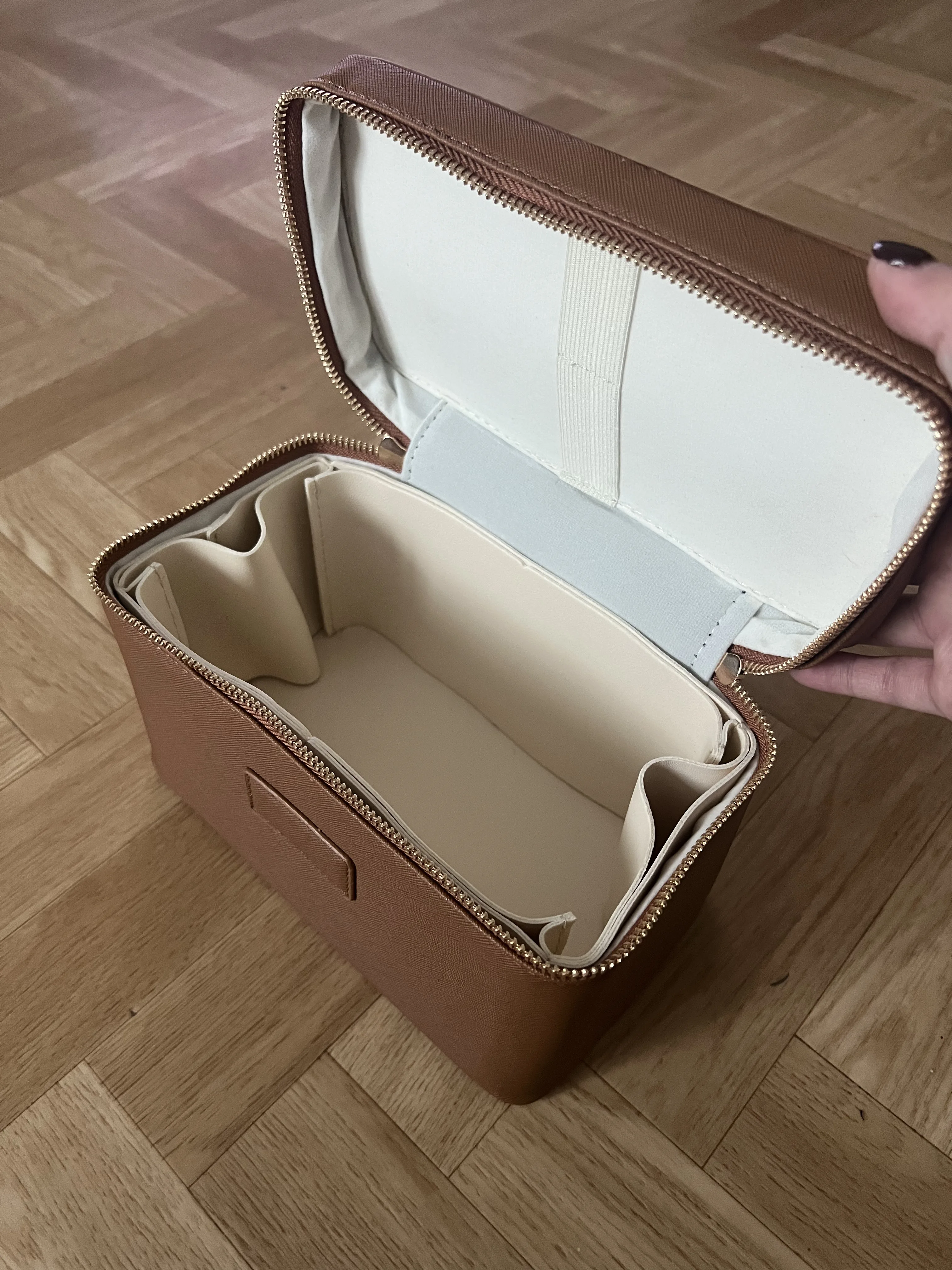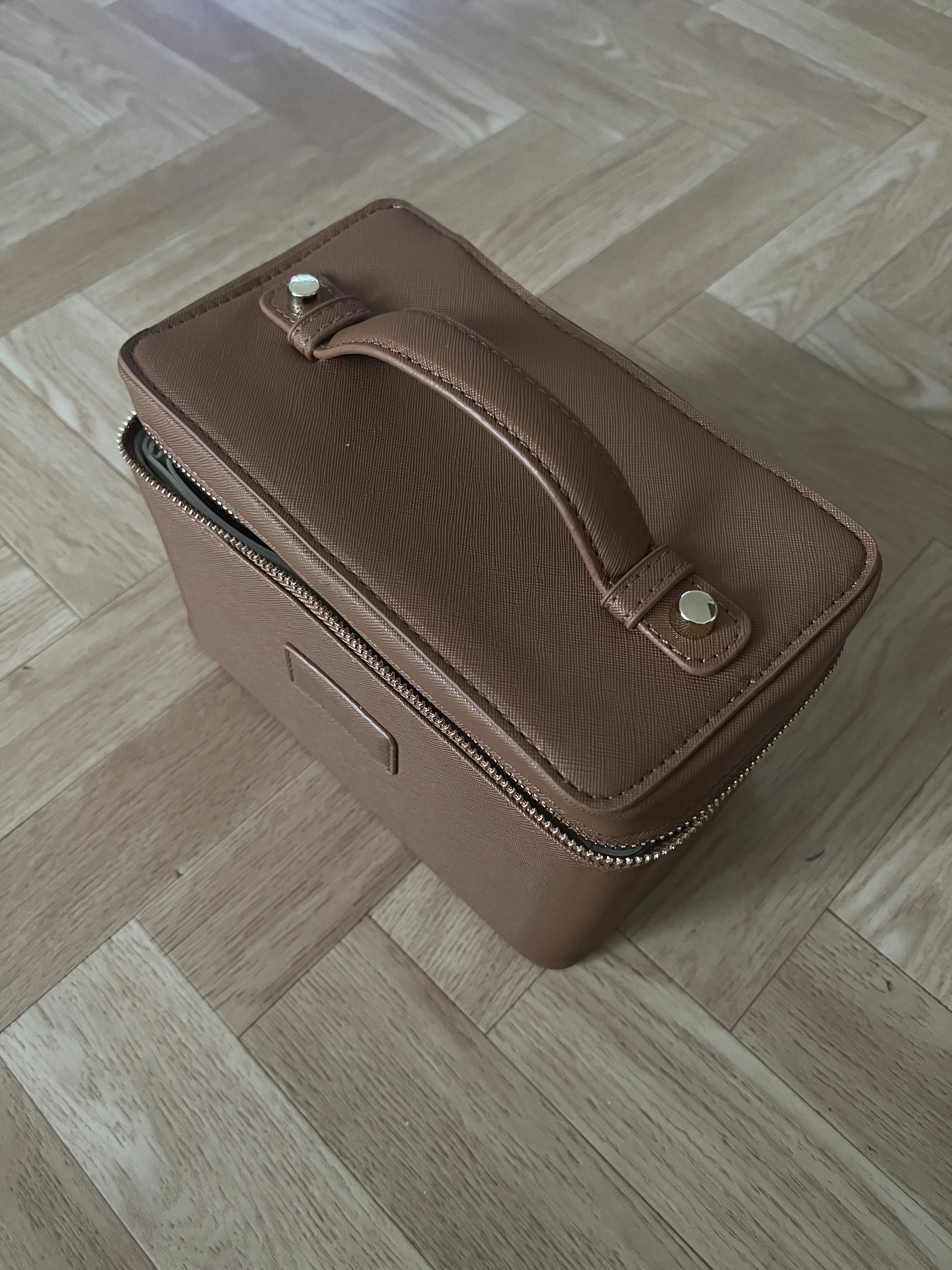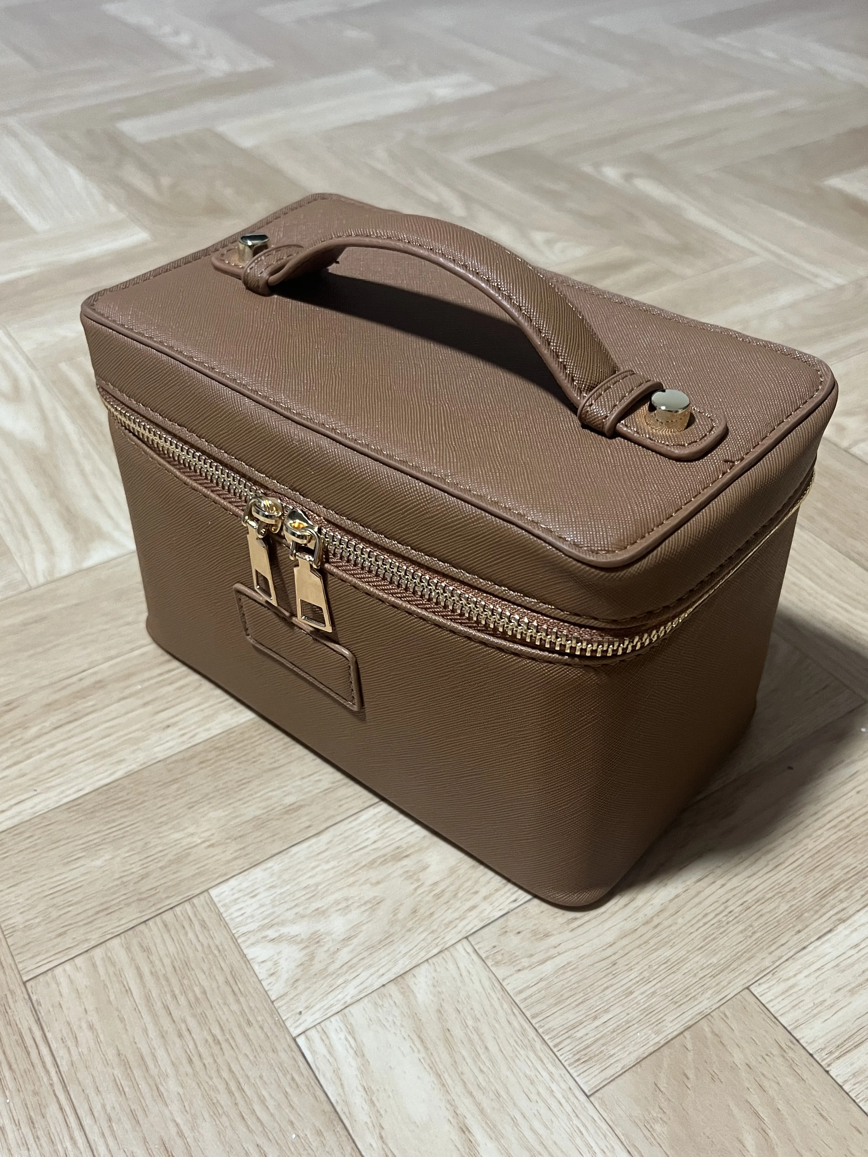 This is going to be a detailed review because i love this bag so much and have been looking for a nice makeup bag for so long without breaking the bank lol. The material is good quality and the leather feels amazing. There’s no issue with the zips….. for now and the stitching is done properly. It came properly packaged with foam, bubble wrap and in a box to prevent dent and i like that. The size is perfect for me personally, it might not fit all your makeup if you have a lot of things duh but it can definitely fit a lot. (ps: if you have full size setting spray it will not fit standing up). I also got it personalized with my initials and it came out beautiful. Overall i give it a 10 and i’m very satisfied with my purchase. (also a good dupe for all the luxury ones out there)