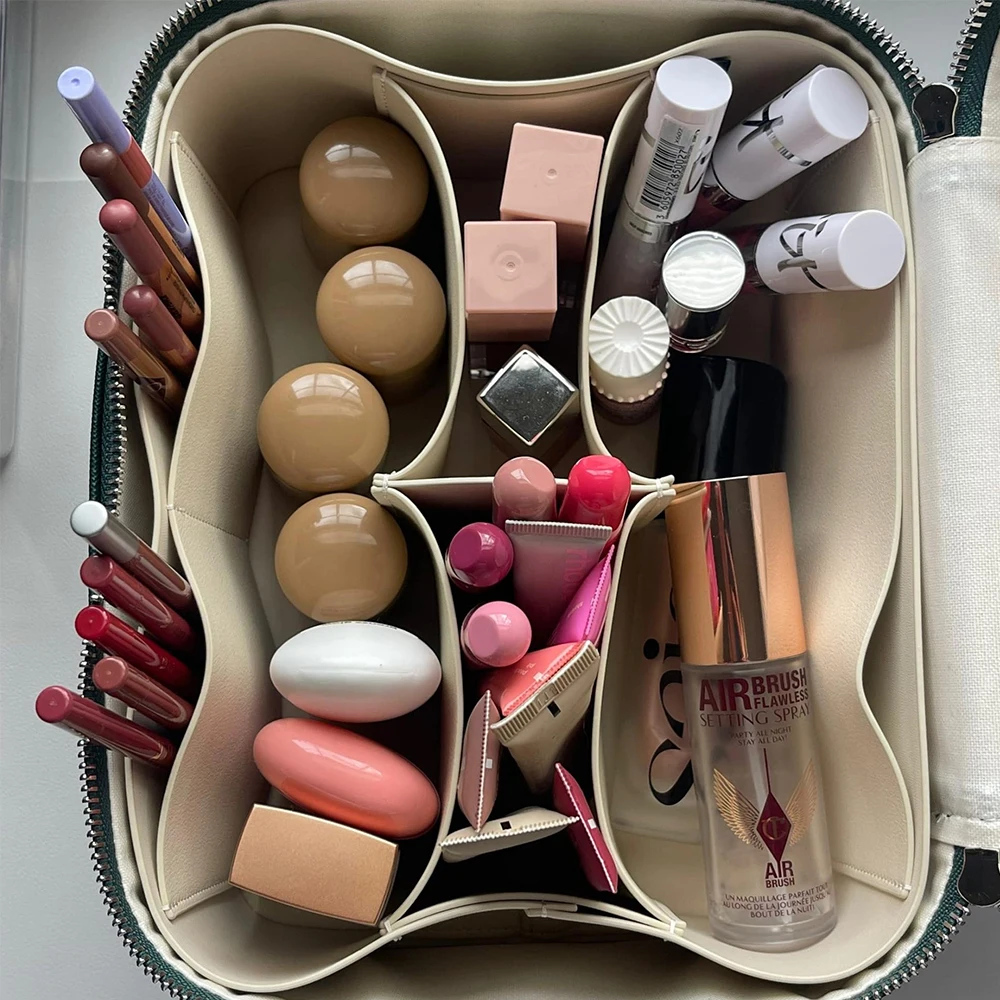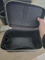 A nice, spacious cosmetic bag with an organizer inside, as well as space for brushes or pencils. Fast delivery.