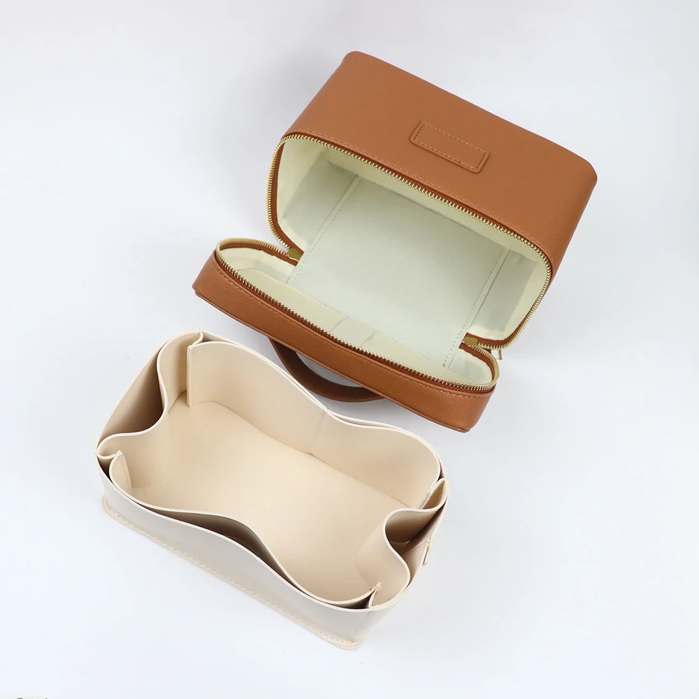 Customized name pu leather cosmetic bag with zoned storage and large capacity toiletry bag for autumn and winter new products
