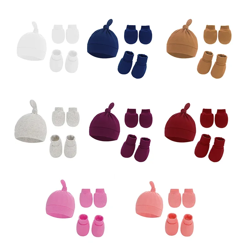 Cute Baby Hat Newborn Bonnet Gloves Socks Set Beanie Hats Ear Shape New Born Gift Photography Props Infant Fashion Accessories