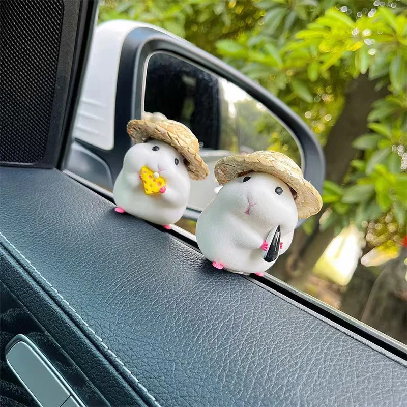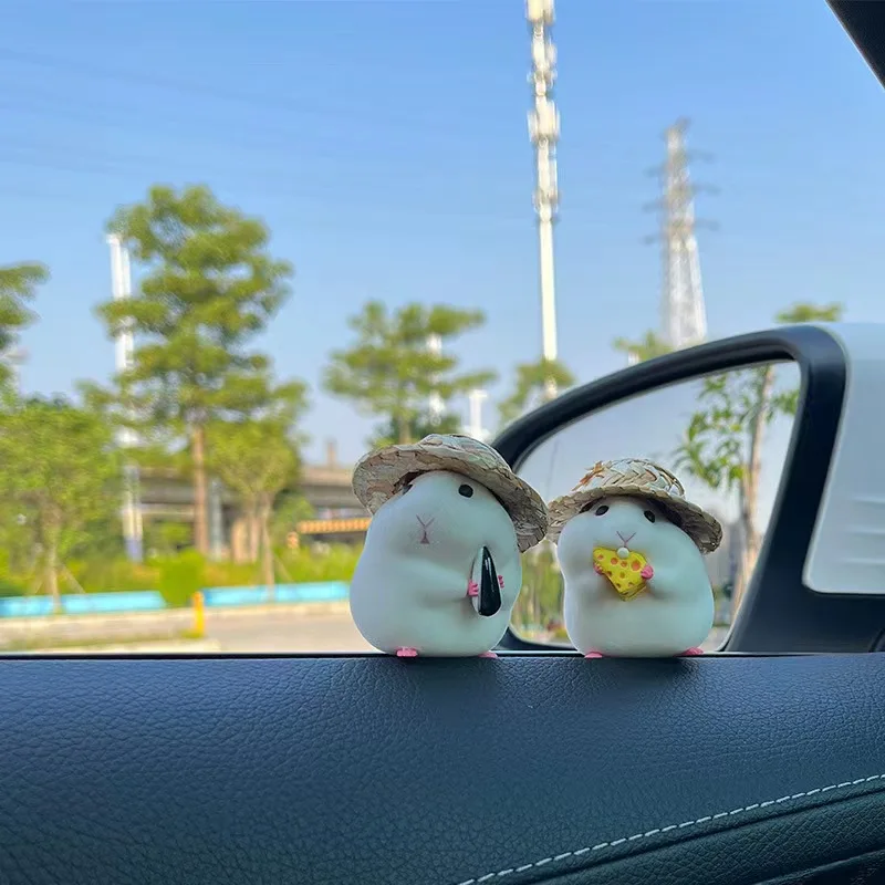 Cute Hamster with Straw Hat Car Ornament,Car Decoration Auto Interior Dashboard Accessories