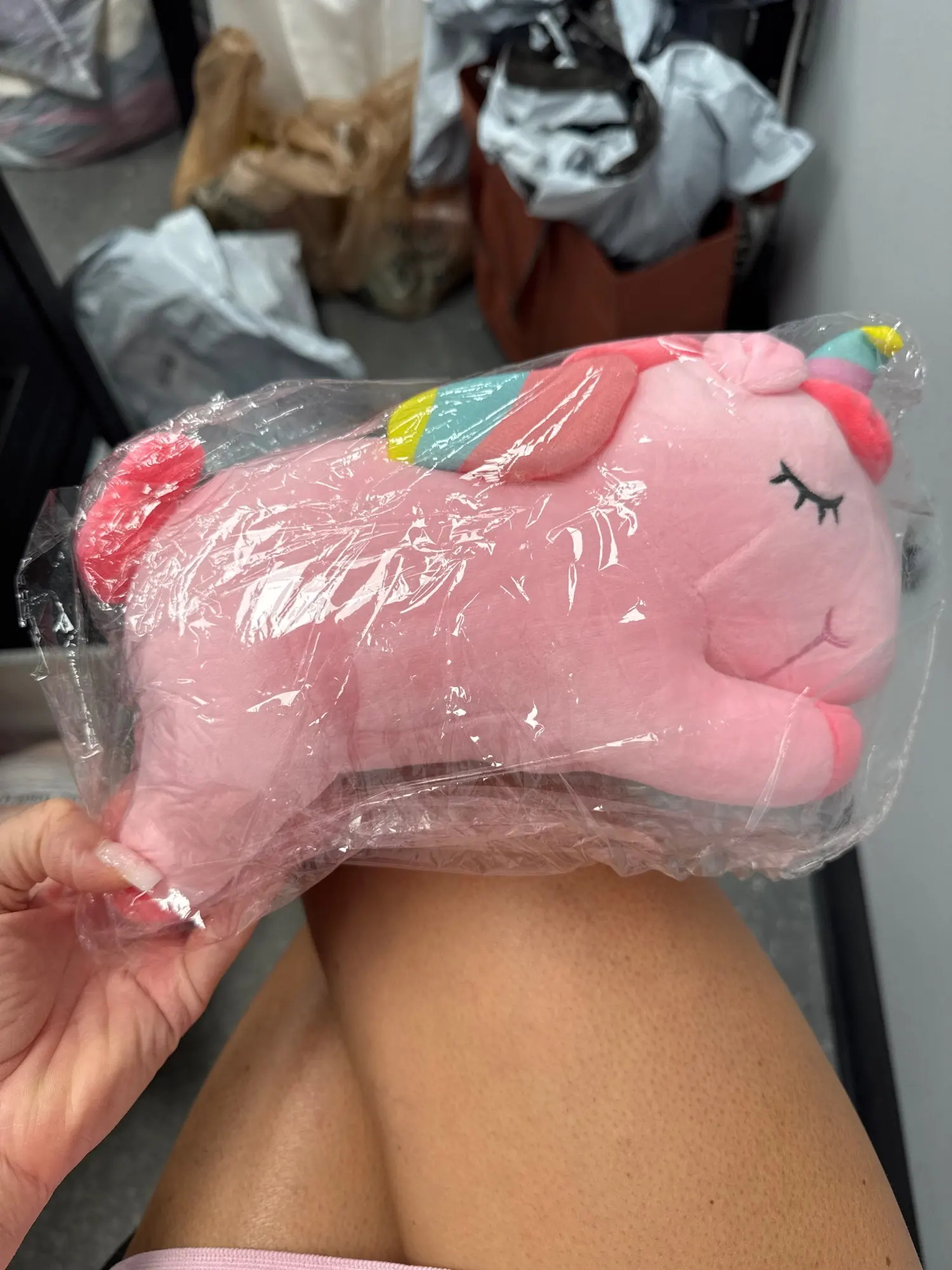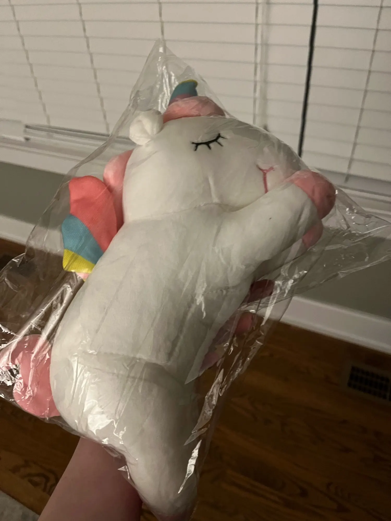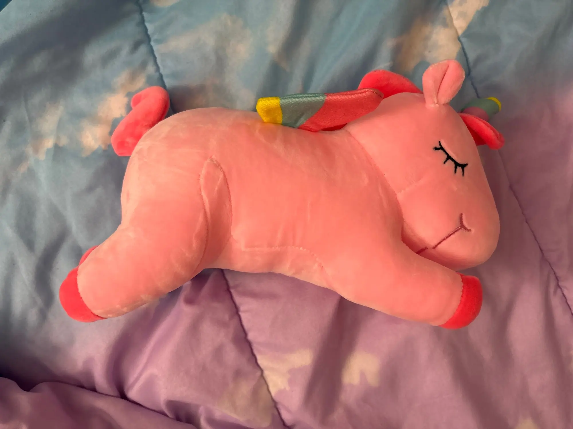 The unicorn plush toy its smaller than it actually looks like but still pretty adorable and cute!
