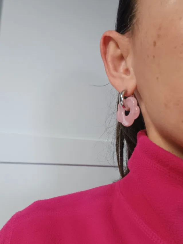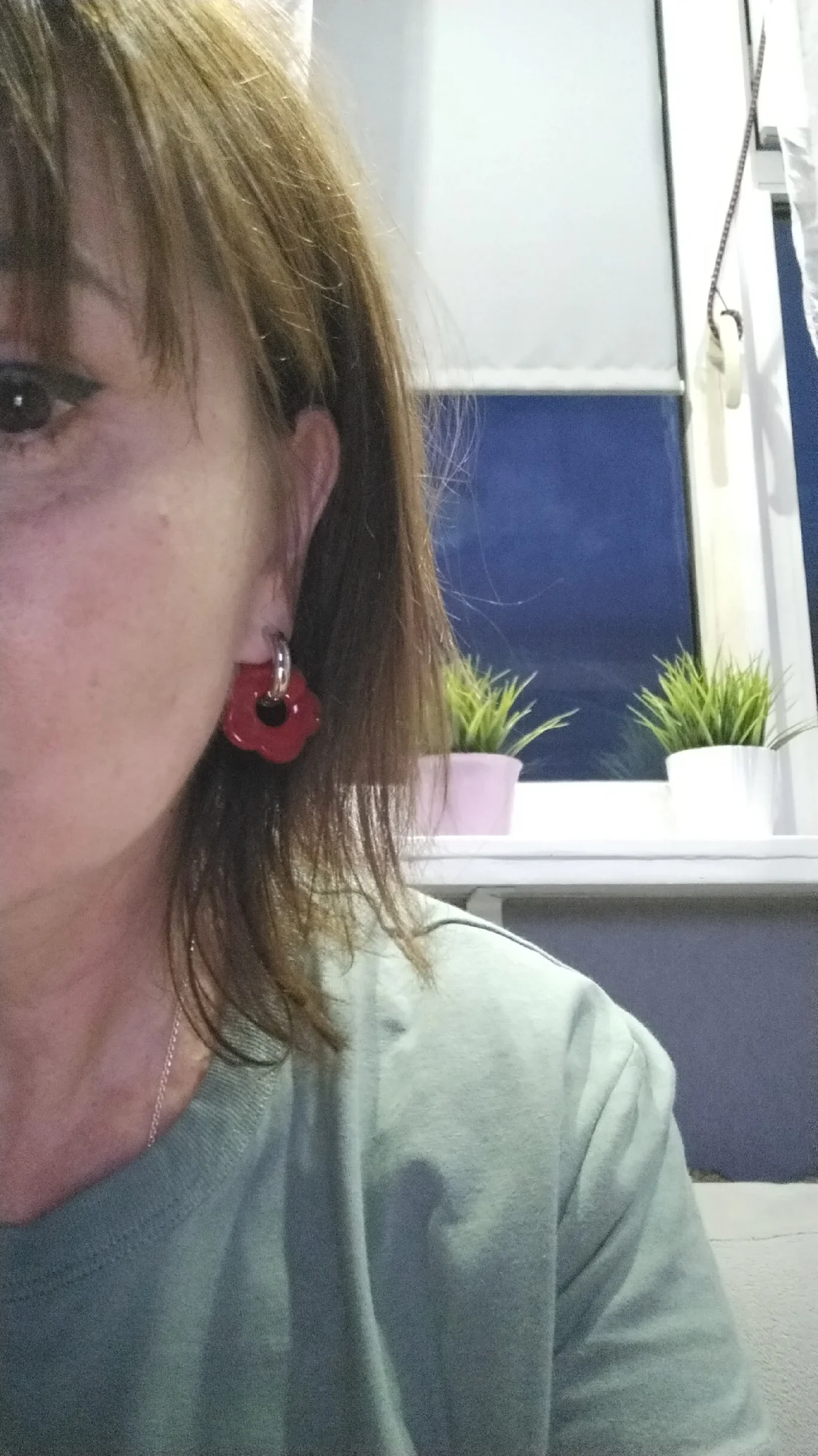 The package arrived earlier than the specified date, quite quickly. This is the second time I’ve ordered these earrings – I gave the first ones as a gift. The quality is good. They are bulky and a bit heavy, but you get used to it over time. The flower itself is lightweight and made of plastic. I also wore just the metal ring separately – it’s also nice. I’m satisfied with everything.
