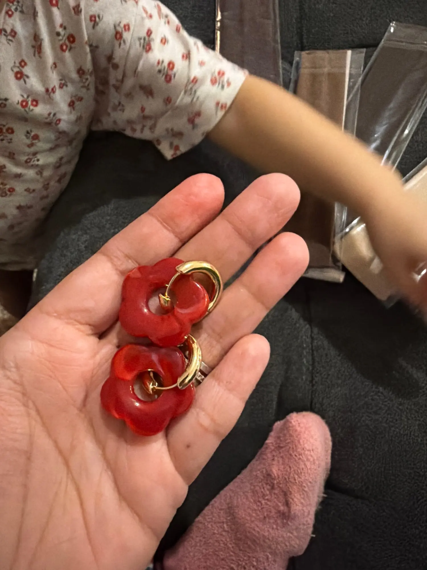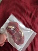 The package arrived earlier than the specified date, quite quickly. This is the second time I’ve ordered these earrings – I gave the first ones as a gift. The quality is good. They are bulky and a bit heavy, but you get used to it over time. The flower itself is lightweight and made of plastic. I also wore the metal ring separately – it’s also nice. I’m satisfied with everything.