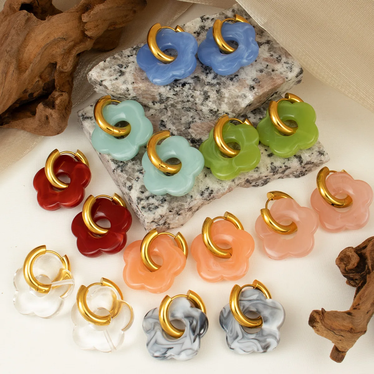 Cute Resin Colorful Flower Charms Earring Gold Color Circle Ear Buckle Hoop Earrings Fashion Jewelry for Women