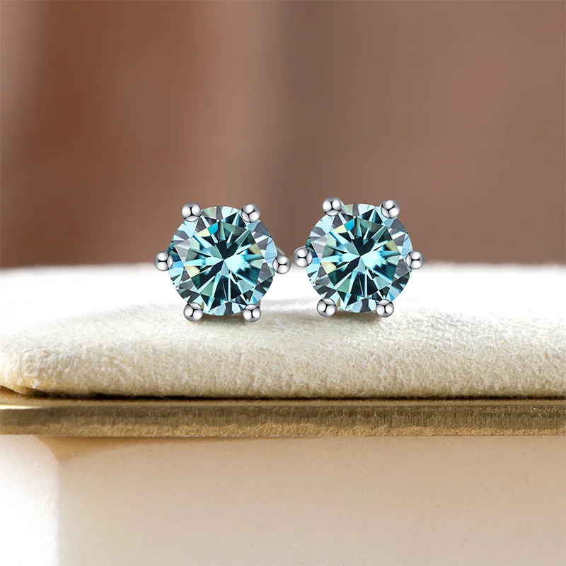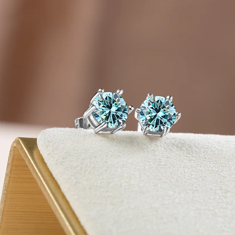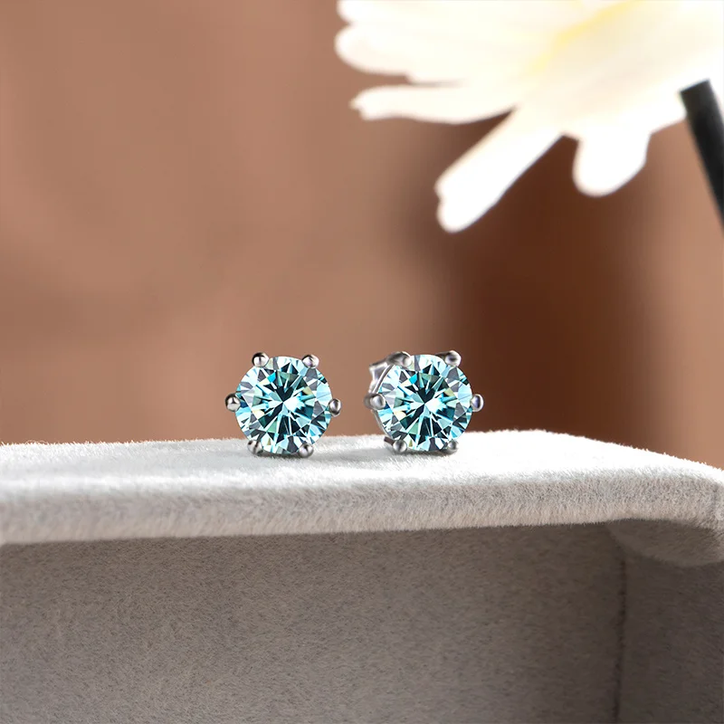 D Color Moissanite Earring blue green moissanite gemstone S925 Sterling Sliver Plated Women Man Sparkling Fine Jewelry Gift