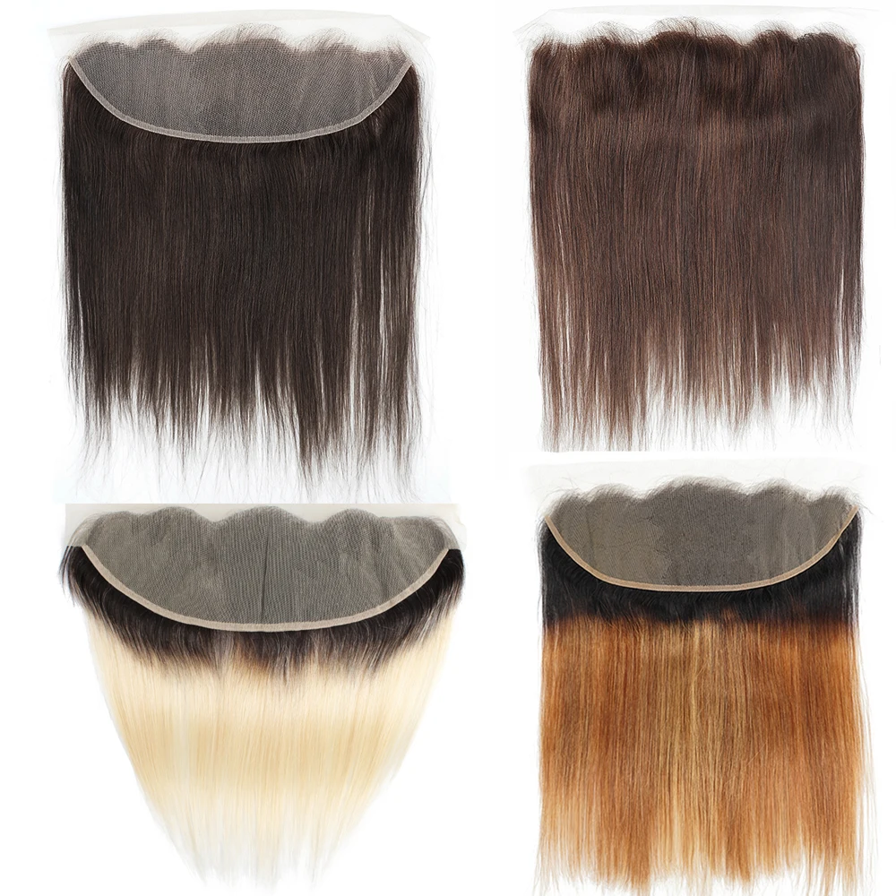 Dark Brown Straight Hair 13x4 Lace Frontal Pre-Plucked Transparent Lace Remy Human Hair Black Brown 613 Blonde Grey BOBBI