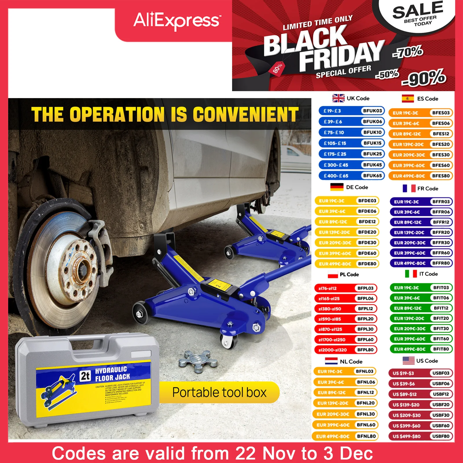 Ideal for lifting cars and light vans.