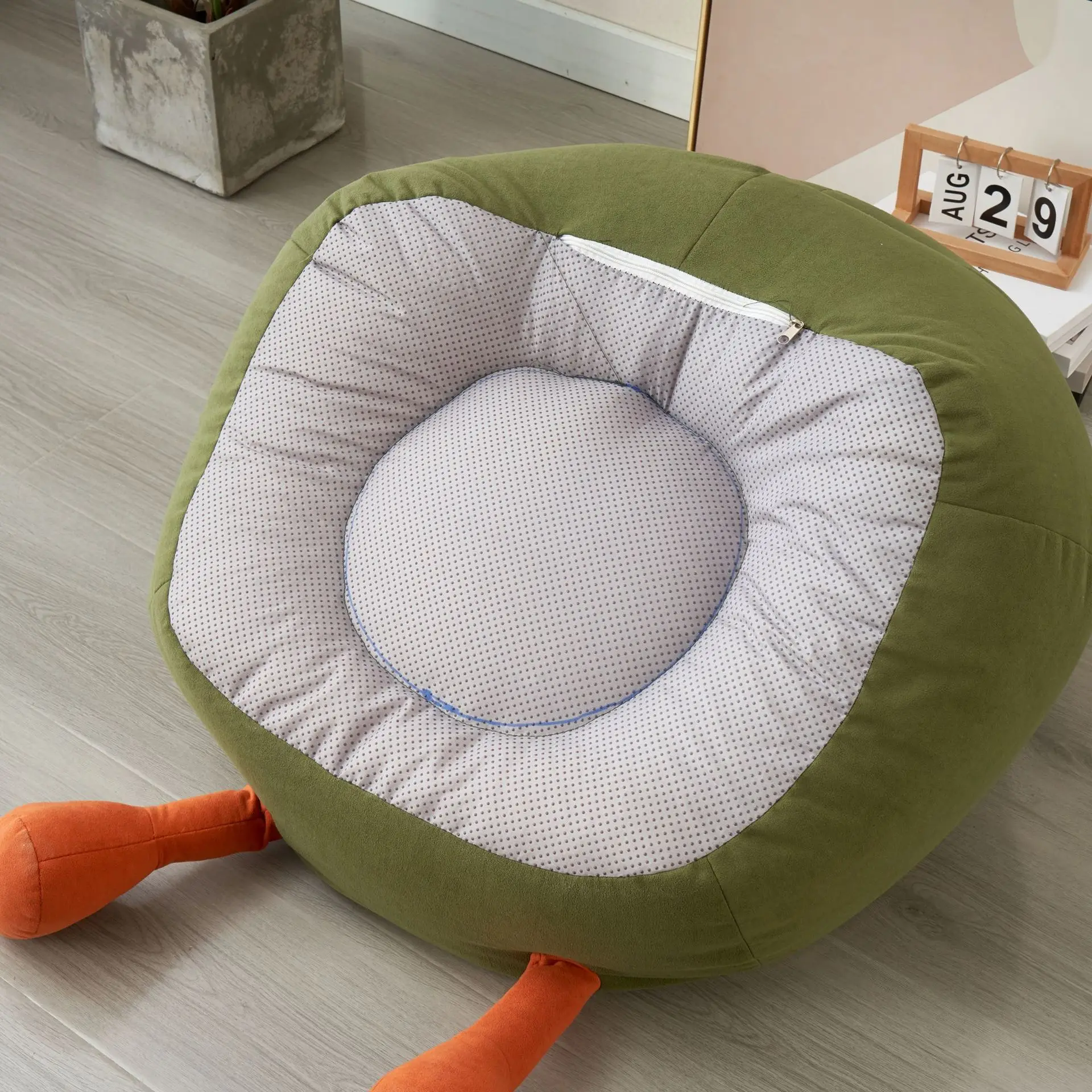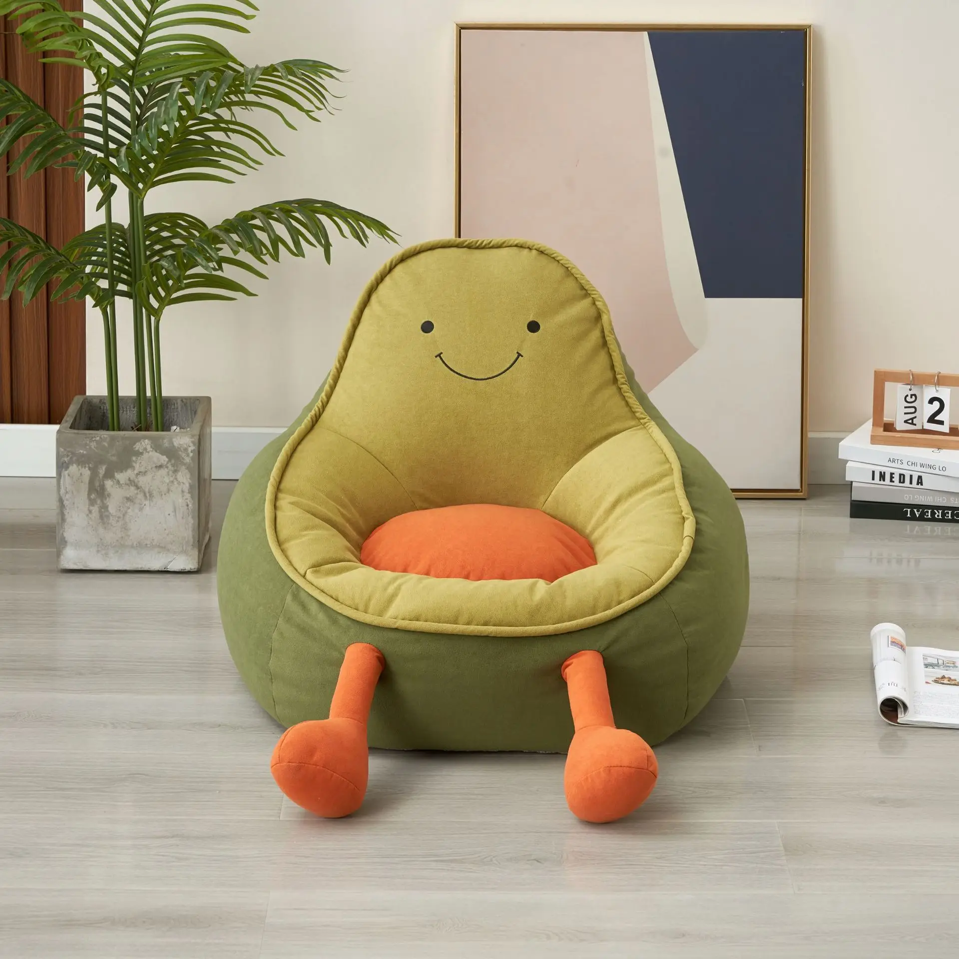 Designer Avocado Cartoon Kids Sofa Bean Bag Chair Single Seat Children Armchair Toddler Plush Nursery Playroom Balcony Green