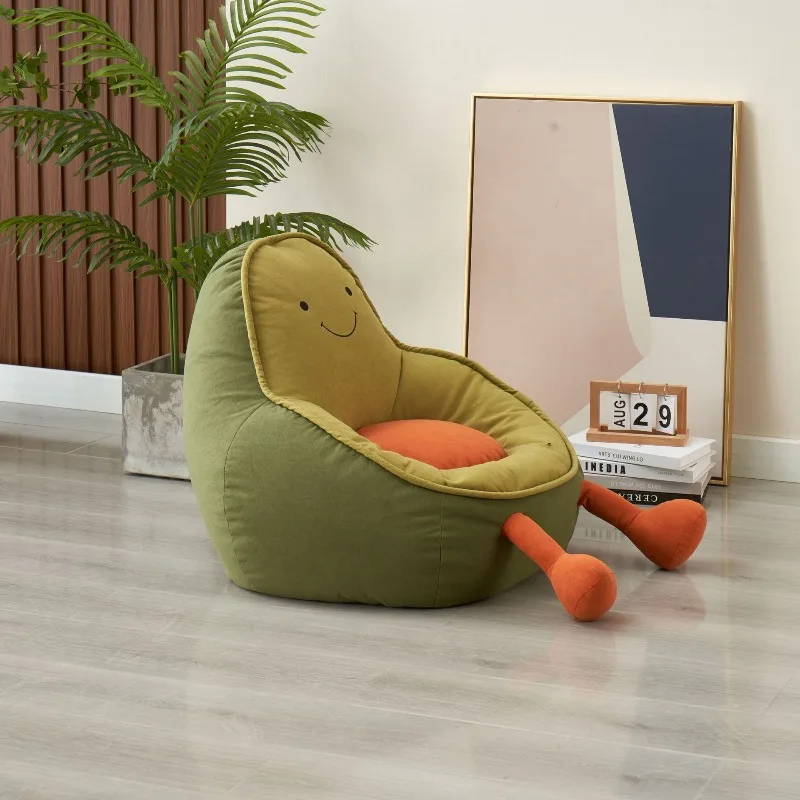 Designer Avocado Cartoon Kids Sofa Bean Bag Chair Single Seat Children Armchair Toddler Plush Nursery Playroom Balcony Green