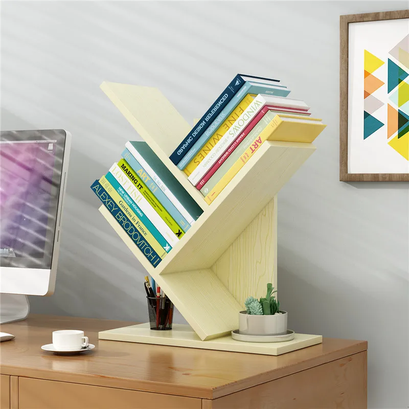 Desktop Tree Bookshelf Multi-layer Simple Floor Fishbone Small Bookcase Student Bedroom Shelf Table Desktop Storage Rack