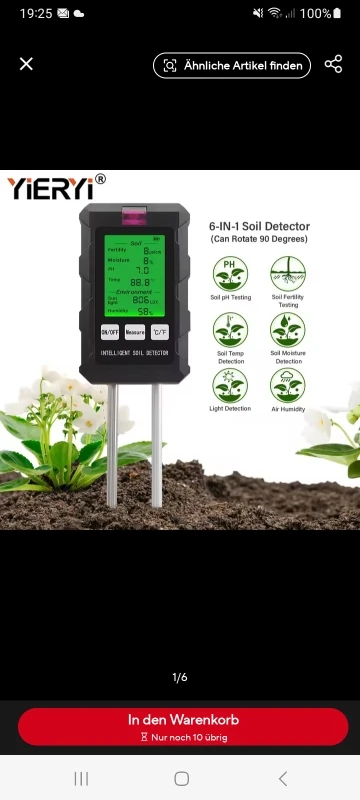 Yieryi This 6-in-1 soil moisture meter detects soil PH value/soil moisture/fertility/light/ambient humidity/temperature. Let us provide you with the 6 values for scientific planting, so you can enjoy planting and harvesting as soon as possible !