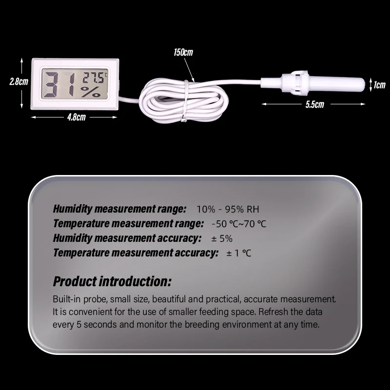 Humidity range: 10%~99%(RH) Humidity measurement accuracy: ±5%(RH)