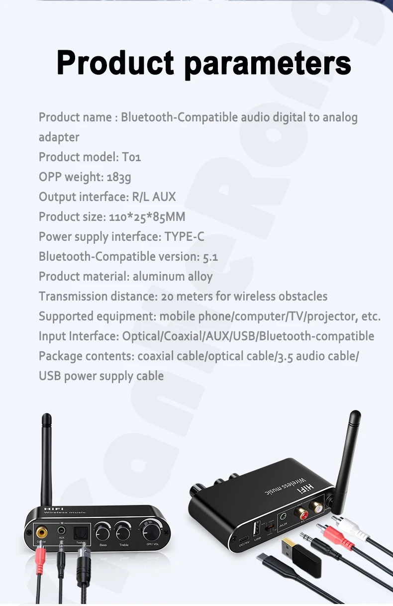 | Model Number | T01 Digital to Analog Audio Converter & Bluetooth-Compatible receiver |