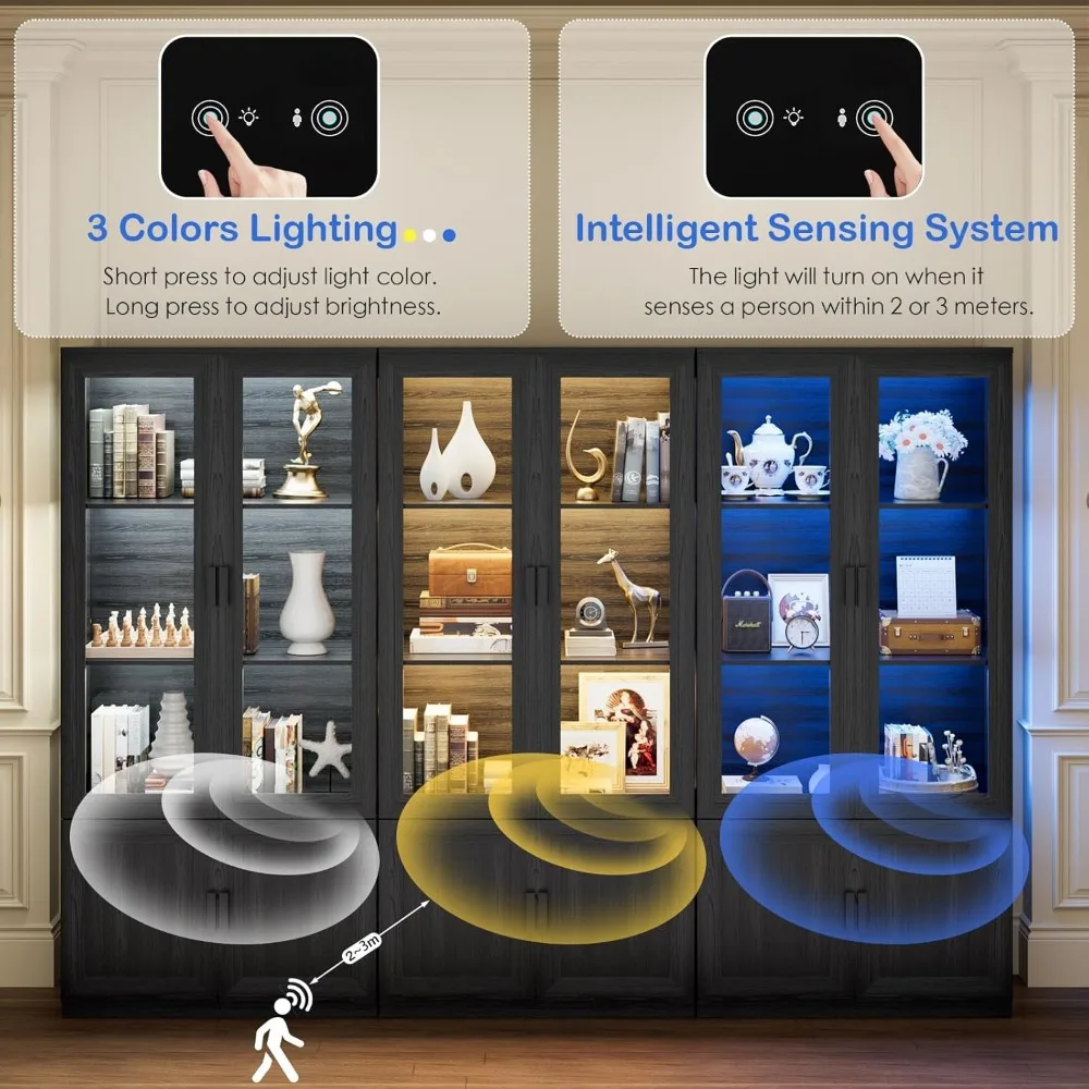 - 【Eye-Catching LED Lighting】Featuring 3 color LED lights with adjustable brightness, this curio cabinet will add a touch of elegance and sophistication to any space in your home.