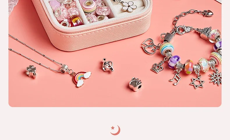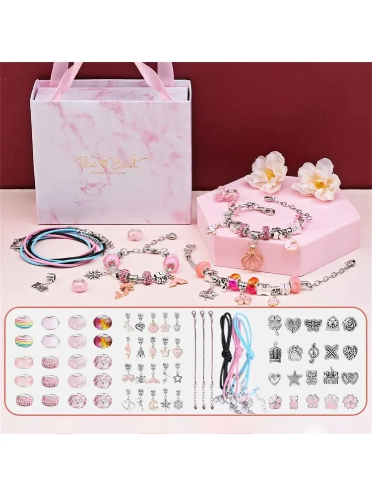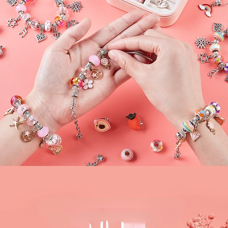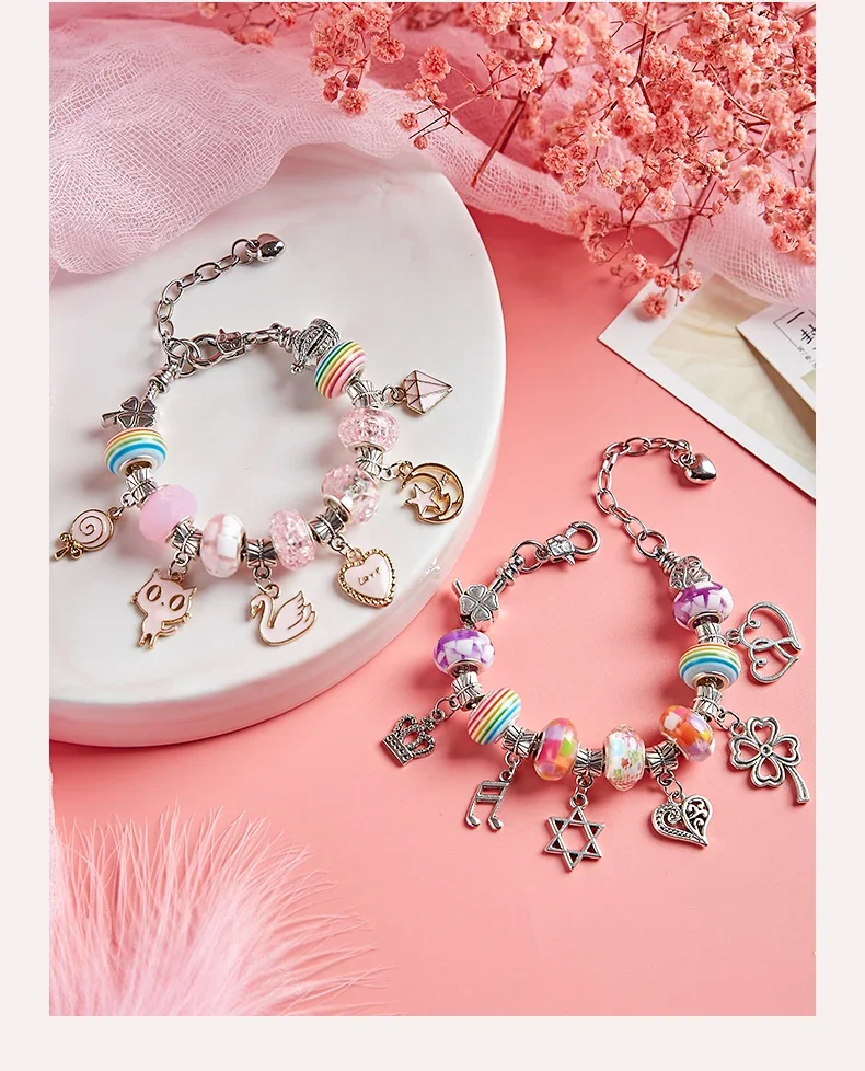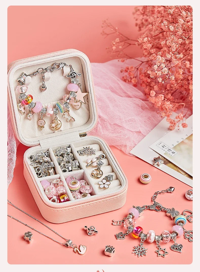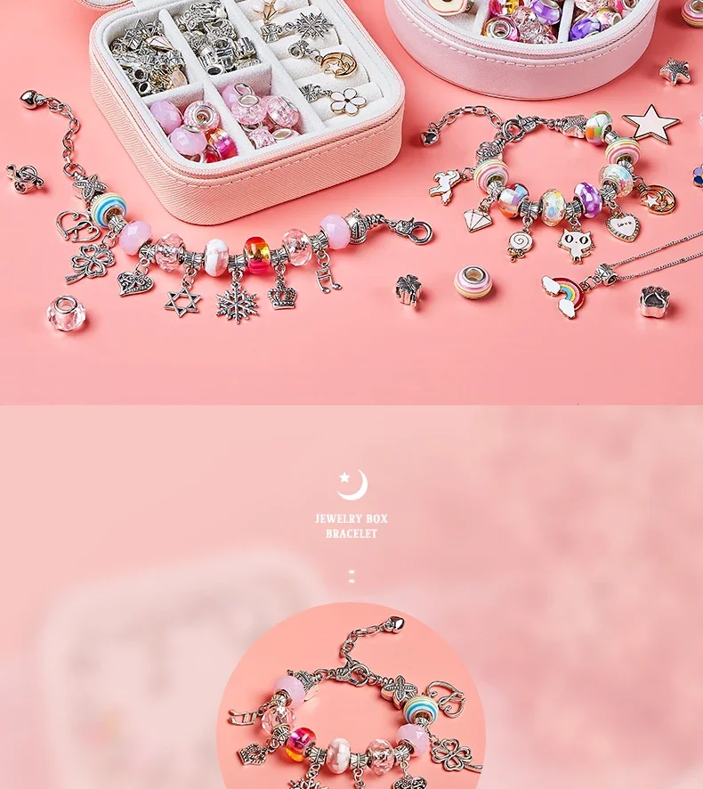 DIY Beaded Bracelet Set with Storage Box for Girls Gift Acrylic European Large Hole Beads Handmade Diy Jewelry Making Kit