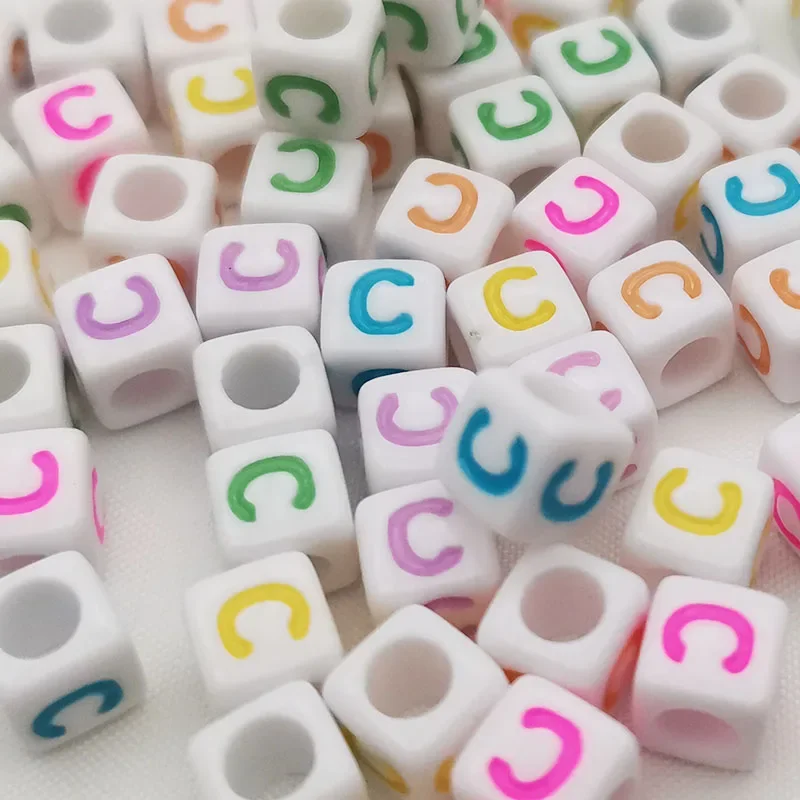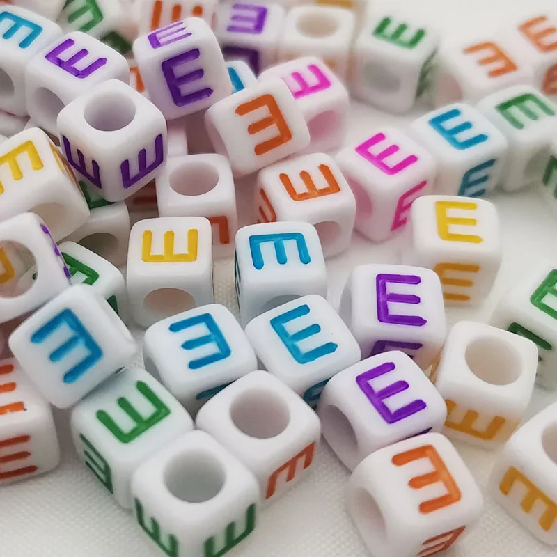 Diy Letter Beads Square Shape Bead Acrylic 6mm Single Colorful Alphabet Beads Women for Jewelry Making Bracelet Necklace 100pcs