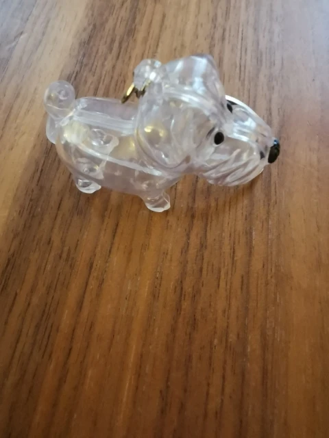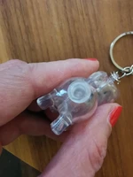 Very cute dog keychain to take some hair of your favorite pet always with you. We put them through the back, closed by a rubber tip. You have to be careful.