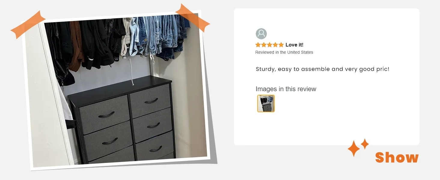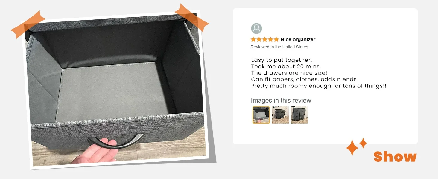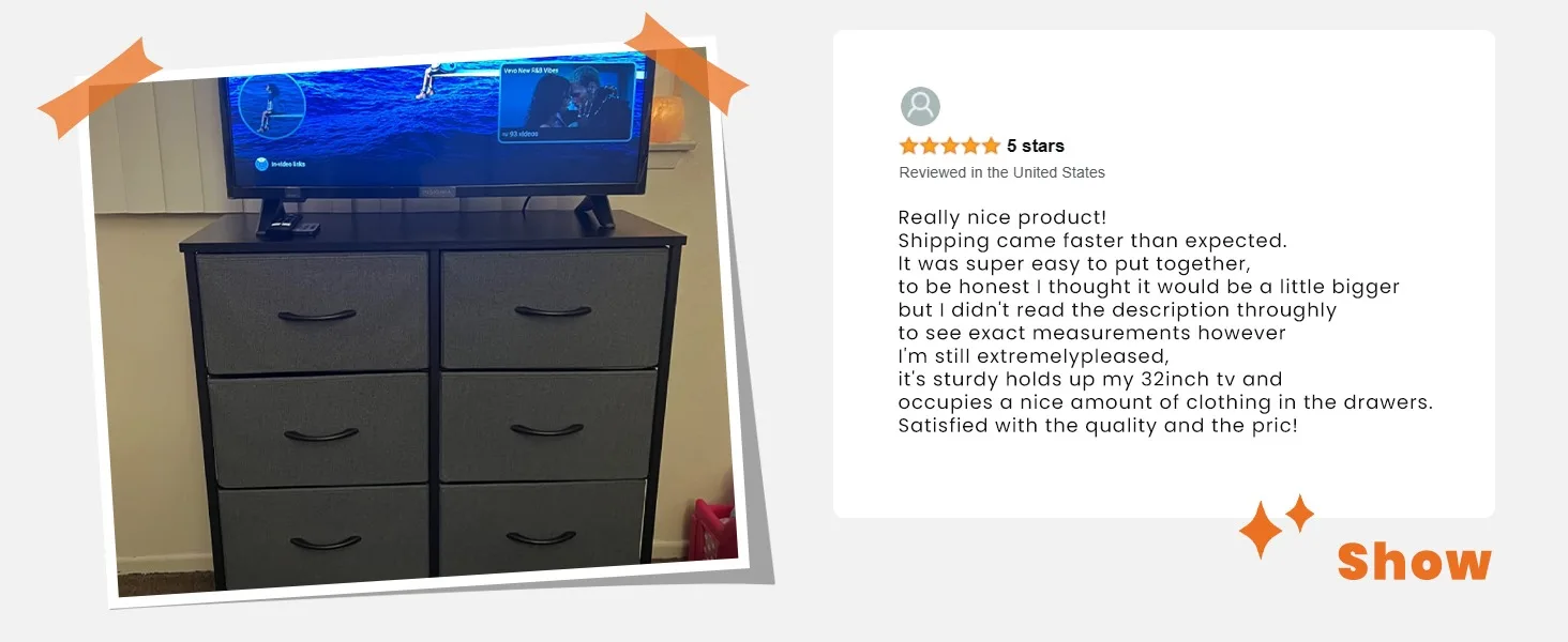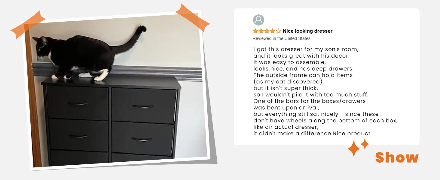 - 【Quality Construction】This fabric dresser combines water-resistant MDF board with a durable steel frame. A cross stable structure to make it sturdy under load 66lb. Anti-tipping accessories are also equipped to prevent accidents. With 4 adjustable feet, you won’t have to worry about stability, and it is also adaptable to different spaces.