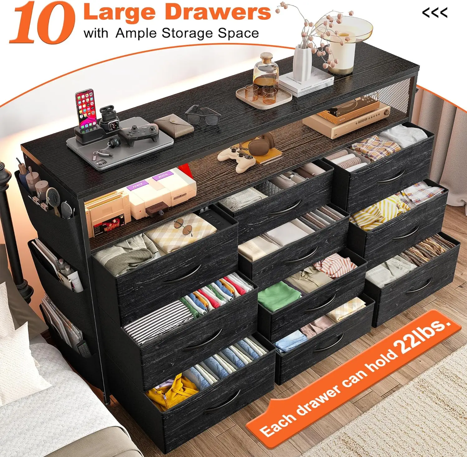 EnHomee Dresser for Bedroom Provides Roomy Storage Space
