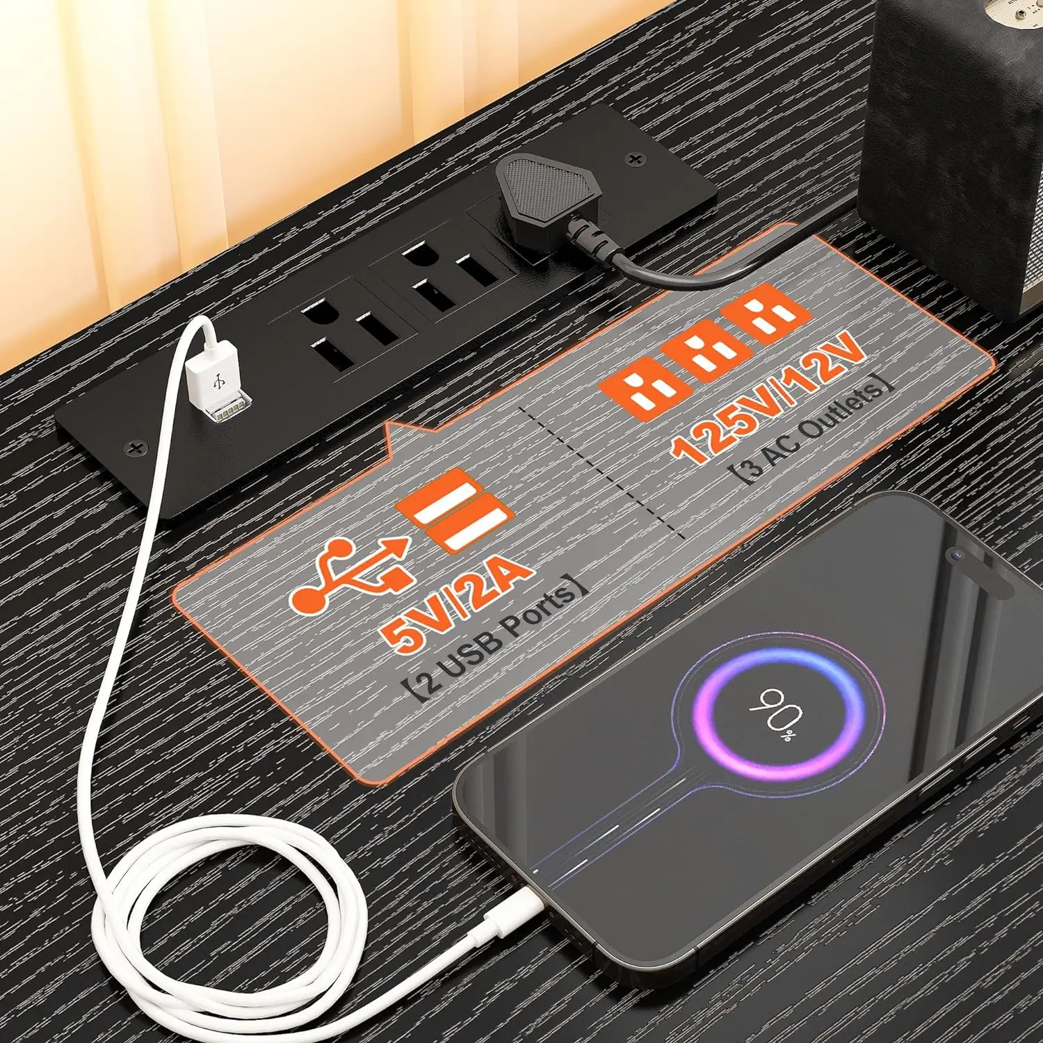 Charge devices with built-in station on our fabric tv stand, wide TV stand is designed with 3 power outlets and 2 USB ports.
