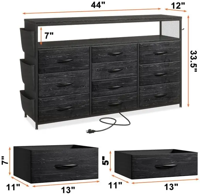 Upgrade Lengthened Dresser TV Stand overall size:12″D x 44″W x 33.5″H, versatile 44″ long TV stand is suitable for TVS up to 55 inches