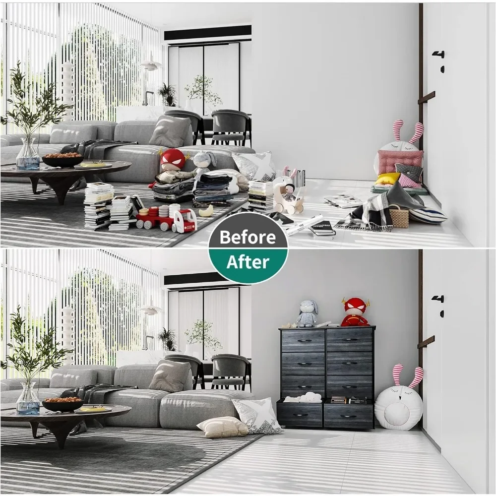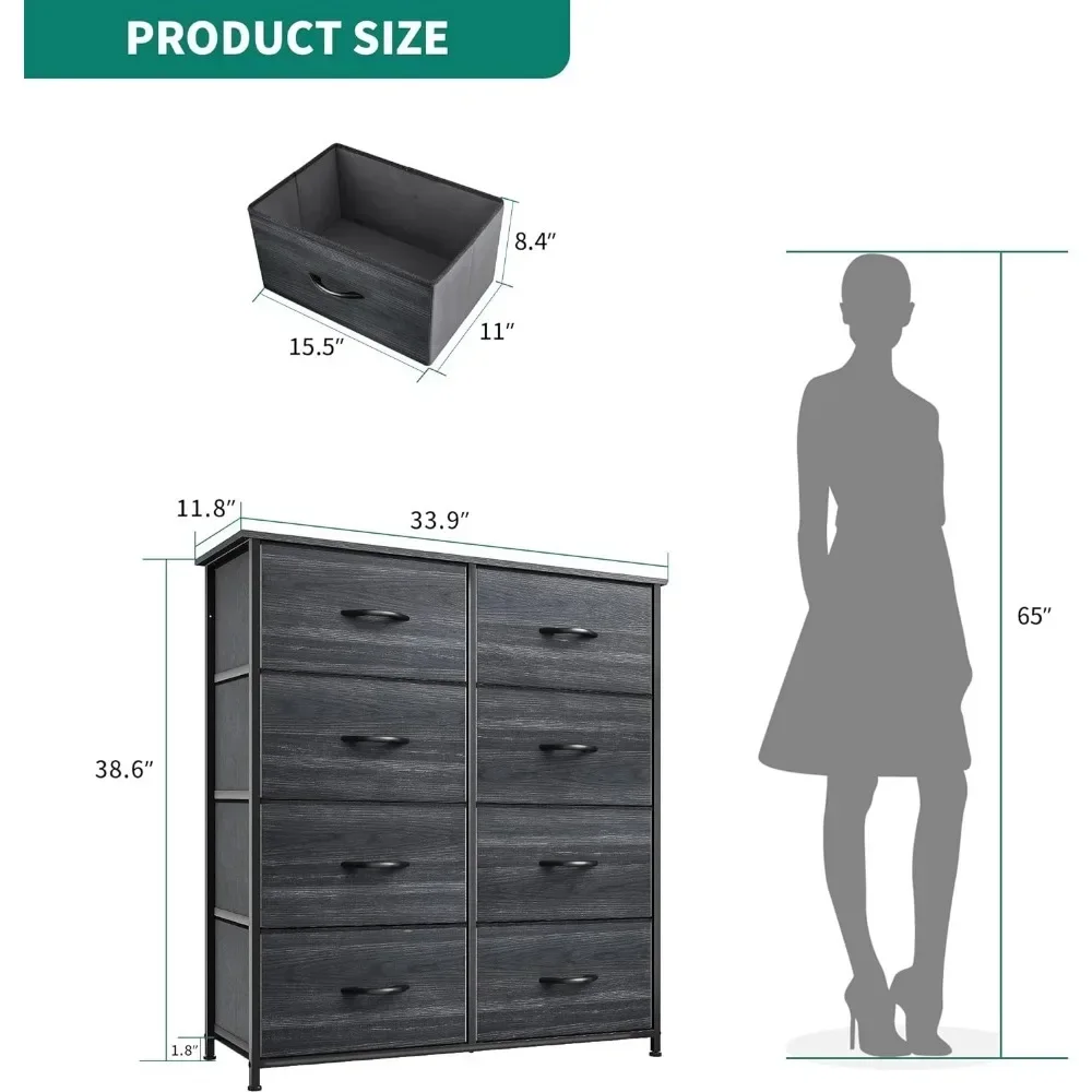 - LARGE CAPACITY- 8 drawers provide multiple storage options and ample room to make your living space neat and tidy; Overall Dimensions: 33.9″ L x 11.8″ W x 38.6″ H. Drawer Dimensions: 15.6″ L x 11.2″ W x 8.5″ H