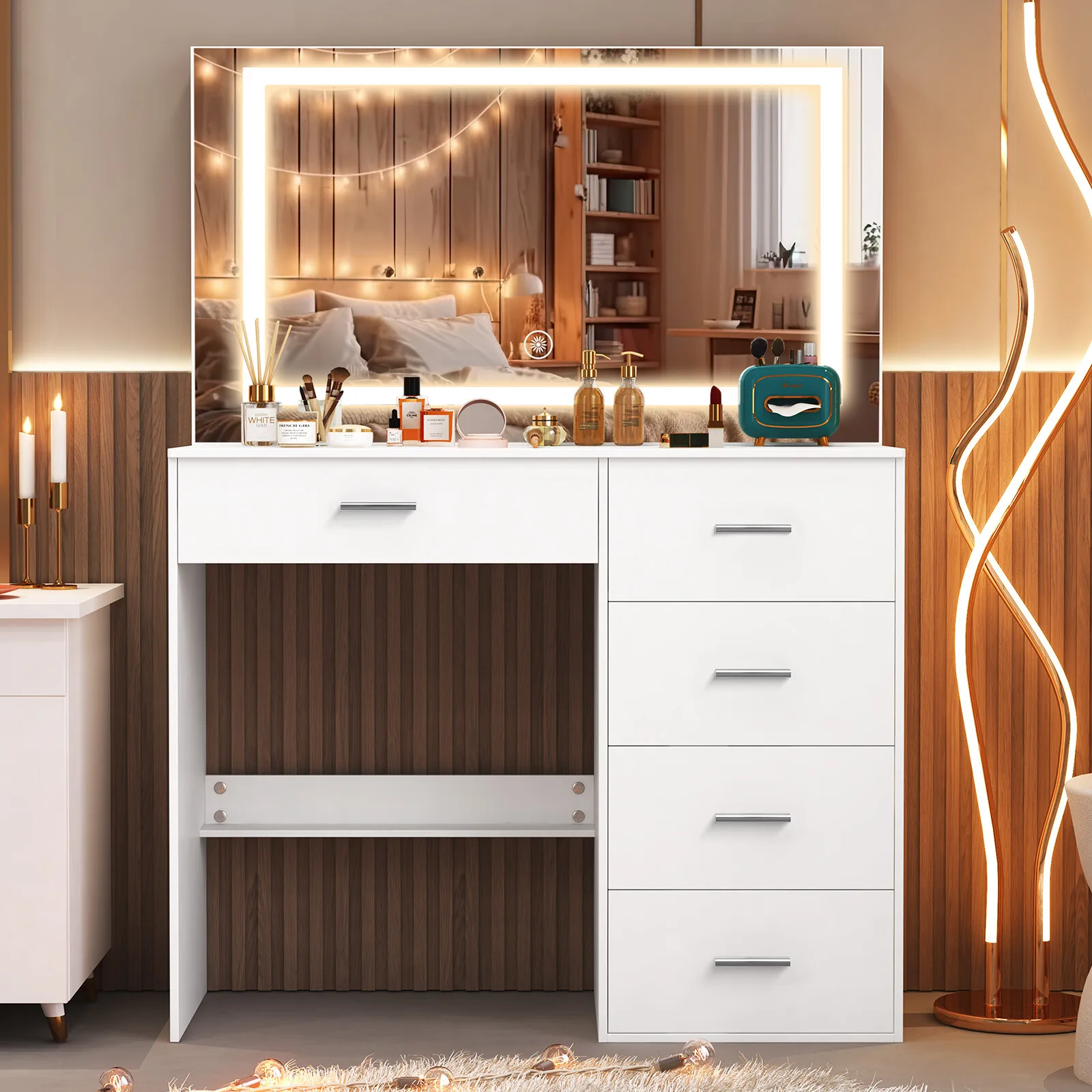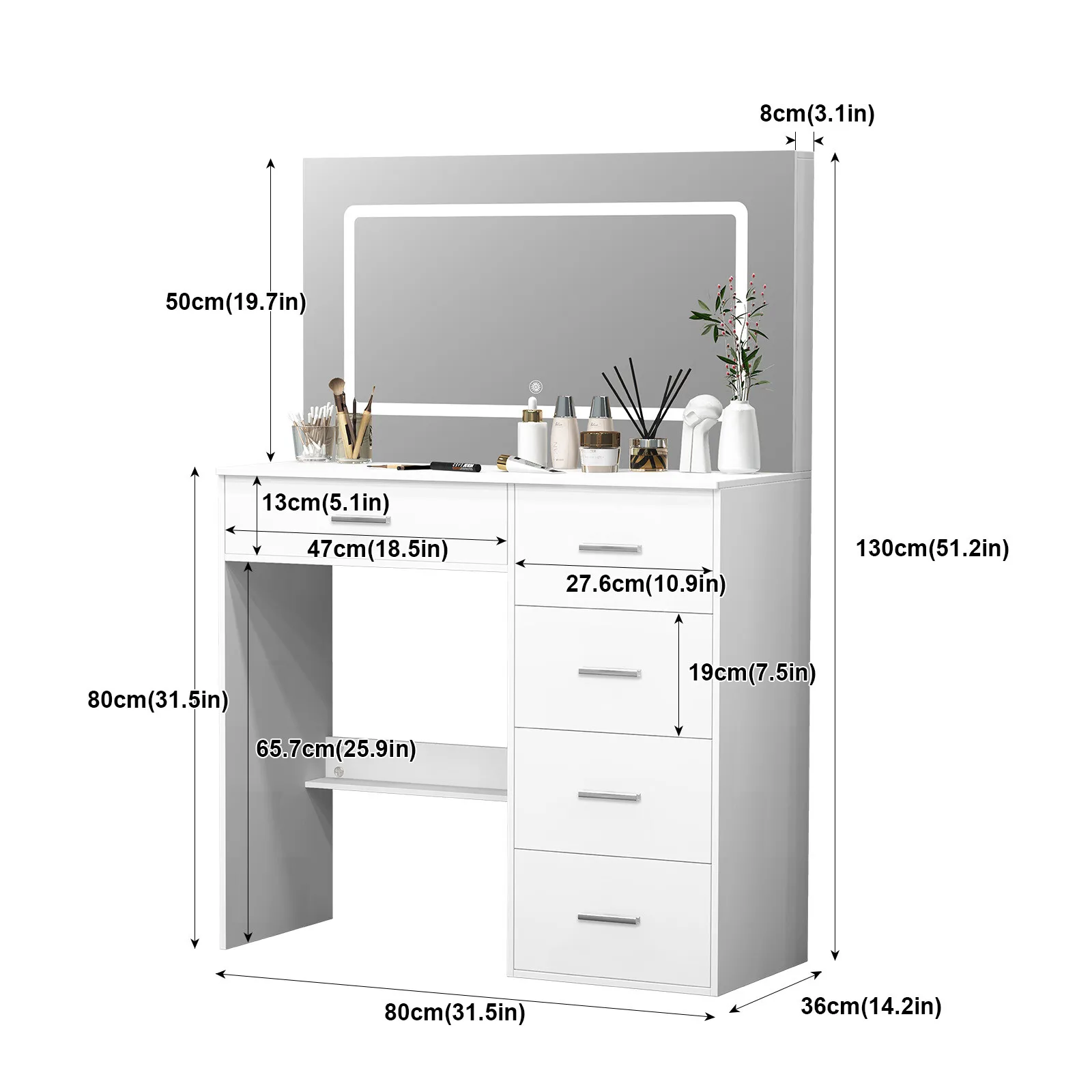 Dressing Table With LED Lights Mirror And Drawers Vanity Table Makeup Desk White