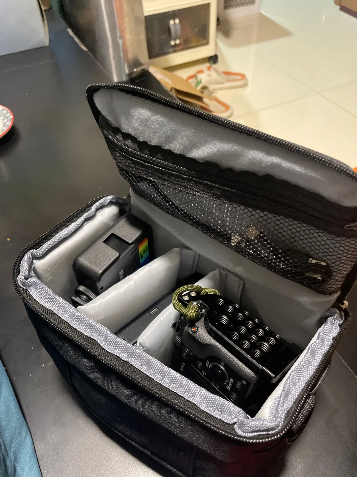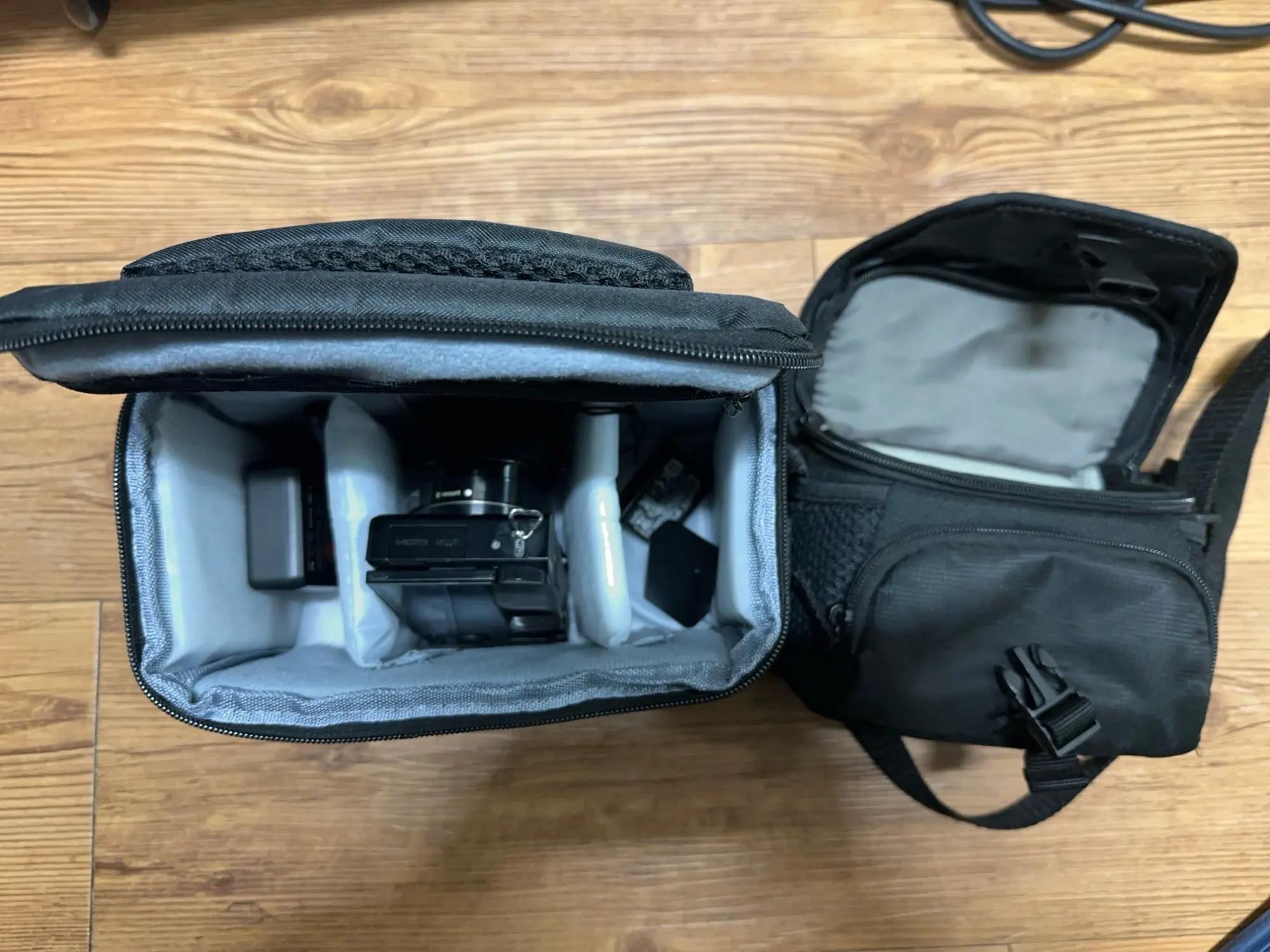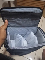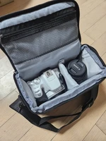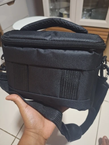 It’s small and sturdy. Considering the price, it can’t get any better than this. The inner lining is tight and there are partitions. For larger DSLRs, decide based on the size. If you attach a lens to a full-body camera, it might not fit. I’m satisfied.