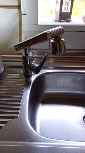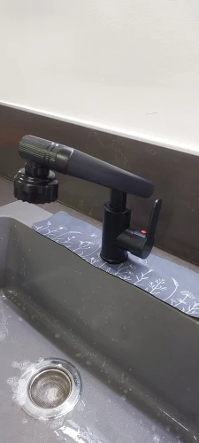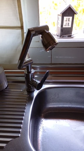Nice and comfortable faucet. The structure allows washing big dishes. The faucet is making strange noise while using it. . I hope it is durable