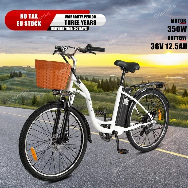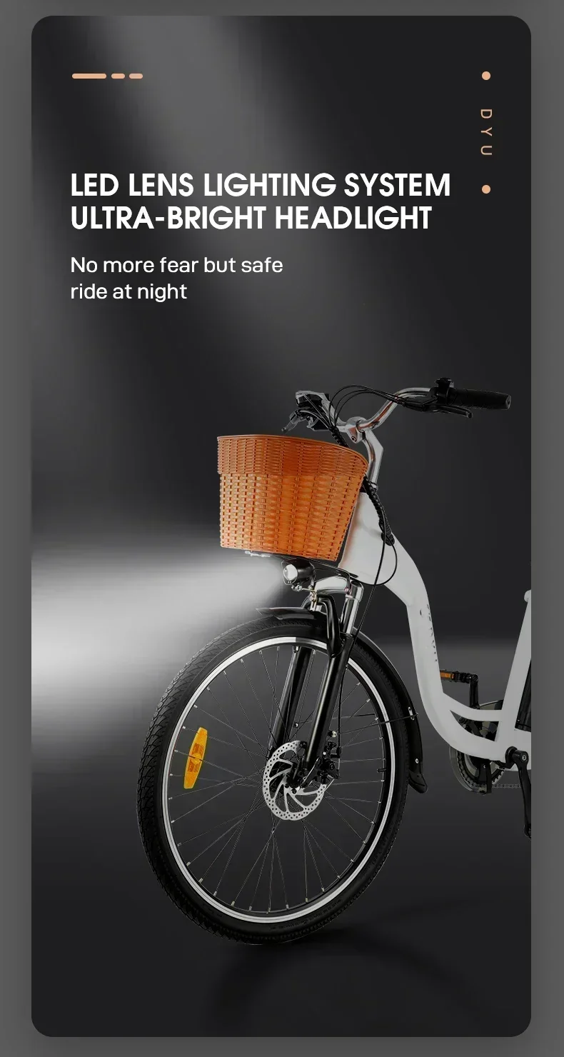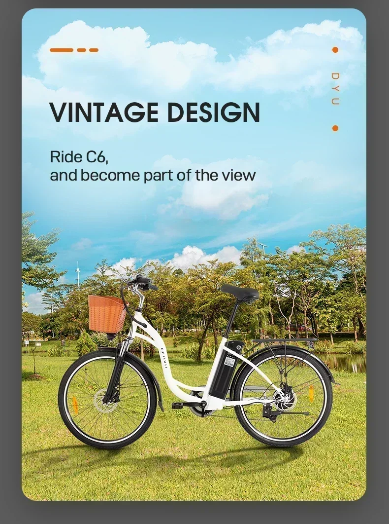 DYU C6 350W Electric Bicycles 36V 12.5AH Lithium Battery Electric Bicycle 26 Inch Tire Urban Commuting Retro E-bike EU Stock