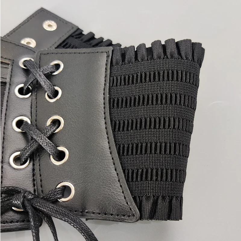 5 reviews for Elastic Plus Size Lace Corset Belts for Women Wide Stretch Cummerbunds Female Goth Punk Dress Corset Belt Brown White Waistband
