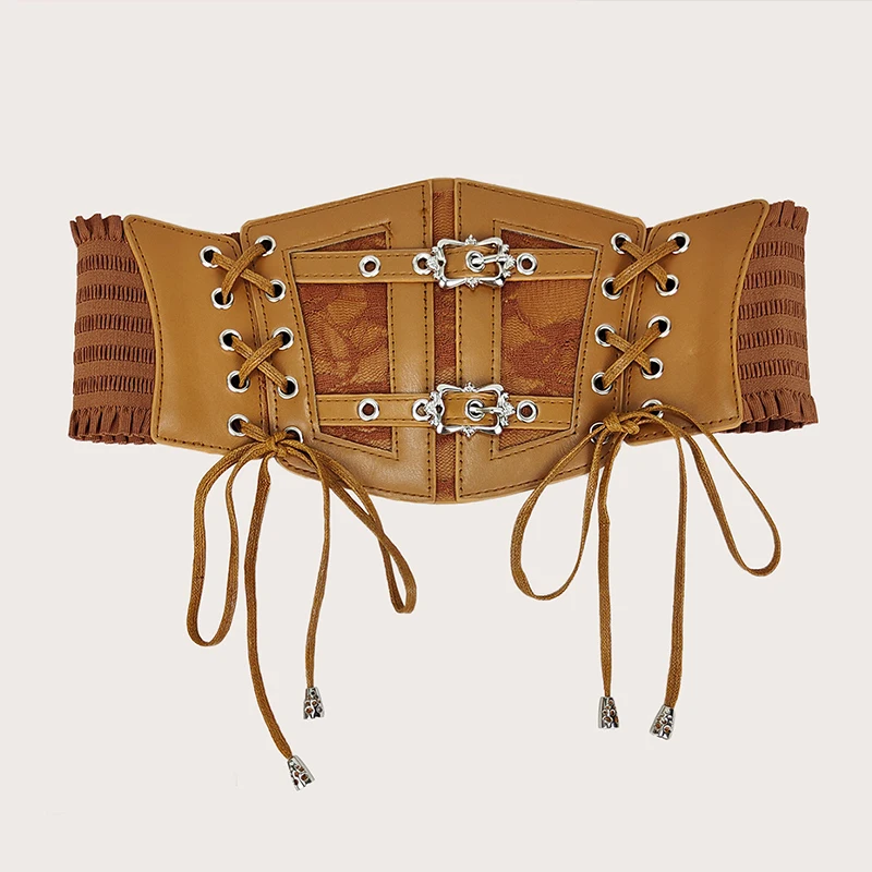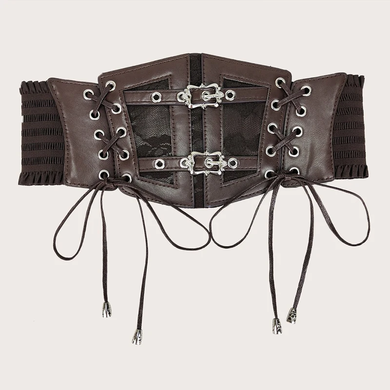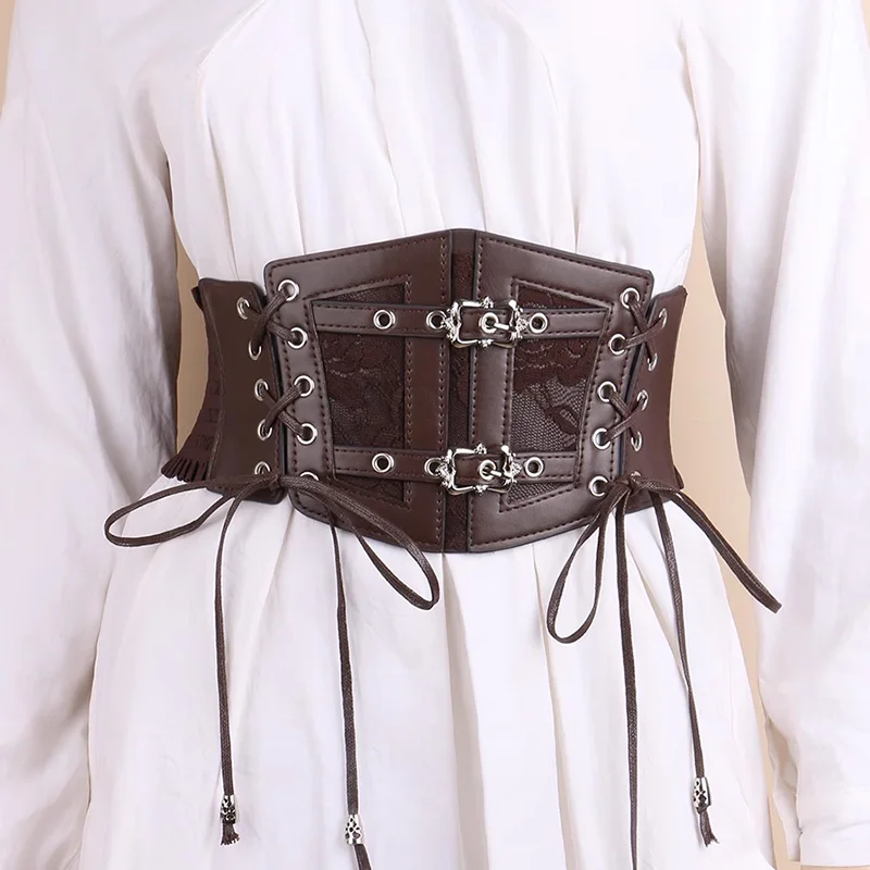 Elastic Plus Size Lace Corset Belts for Women Wide Stretch Cummerbunds Female Goth Punk Dress Corset Belt Brown White Waistband