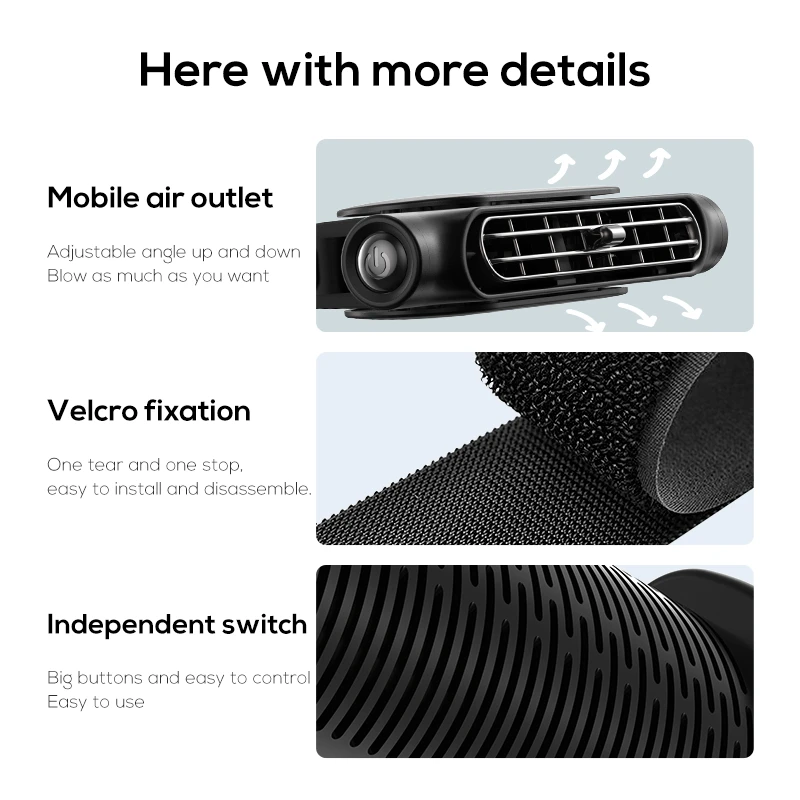 1.Stylish and Powerful: Get a refreshing breeze on your backseat with our Car Rear Seat Fan. Featuring a modern design that blends with your car’s interior, it delivers optimal airflow for a goodand comfortable ride.
