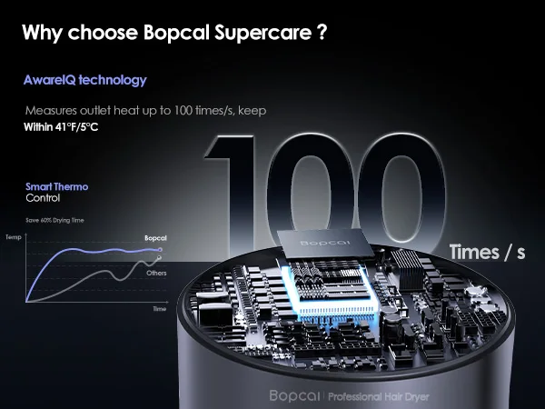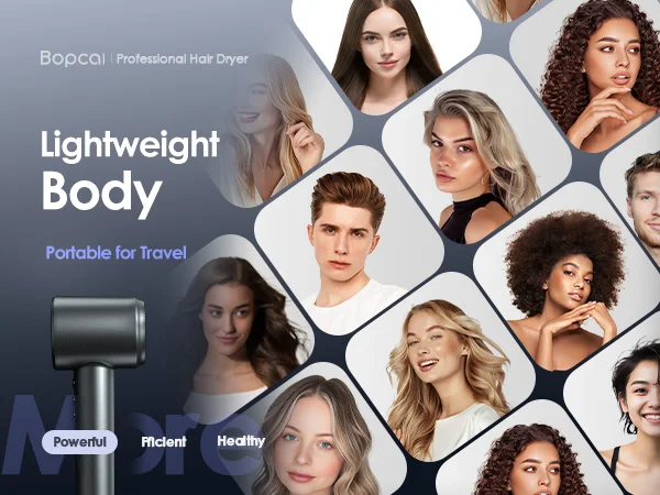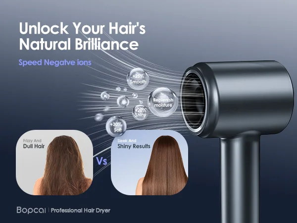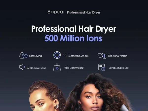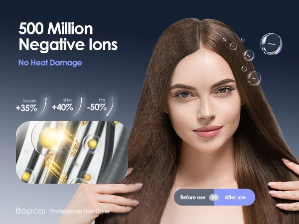 1. 【A Game-changer Hair Dryer!】 A truly hair care dryer, Bopcal hair dryer generates powerful airflow that is five times faster than typical dryers. With cutting-edge technology releasing 500 million negative ions and an intelligent temperature control system, it delivers professional results, leaving your hair smooth, frizz-free, and no heat damage. Upgrade your daily routine with the Bopcal blow dryer for consistently beautiful hair.