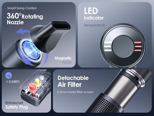 4. 【Perfect for All Hair Type】 Our hair dryer is equipped with 4 temperature settings and 3 speed options, allowing you to find the most comfortable drying experience tailored to your needs. Whether your hair is curly, thick, or fine, it adapts seamlessly to provide optimal care. Additionally, it features an smart intelligent temperature control sensor that adjusts the temperature 100 times per second, maintaining a consistent heat level to keep your hair drying without damage.