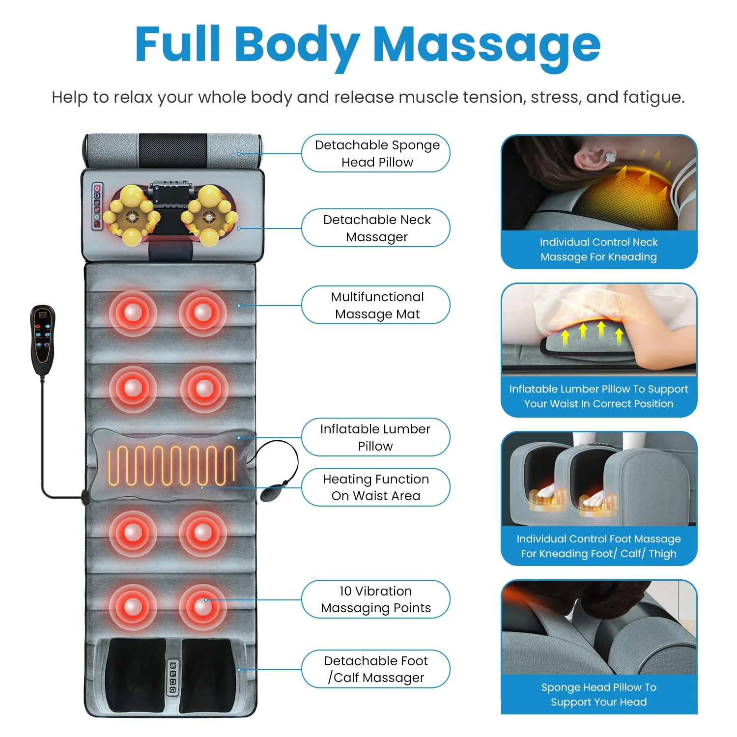 Electric Massage Mattress Vibrating Heating Infrared Massager Cushion For Neck Back Foot Full Body Pain Stress Relief Body Relax