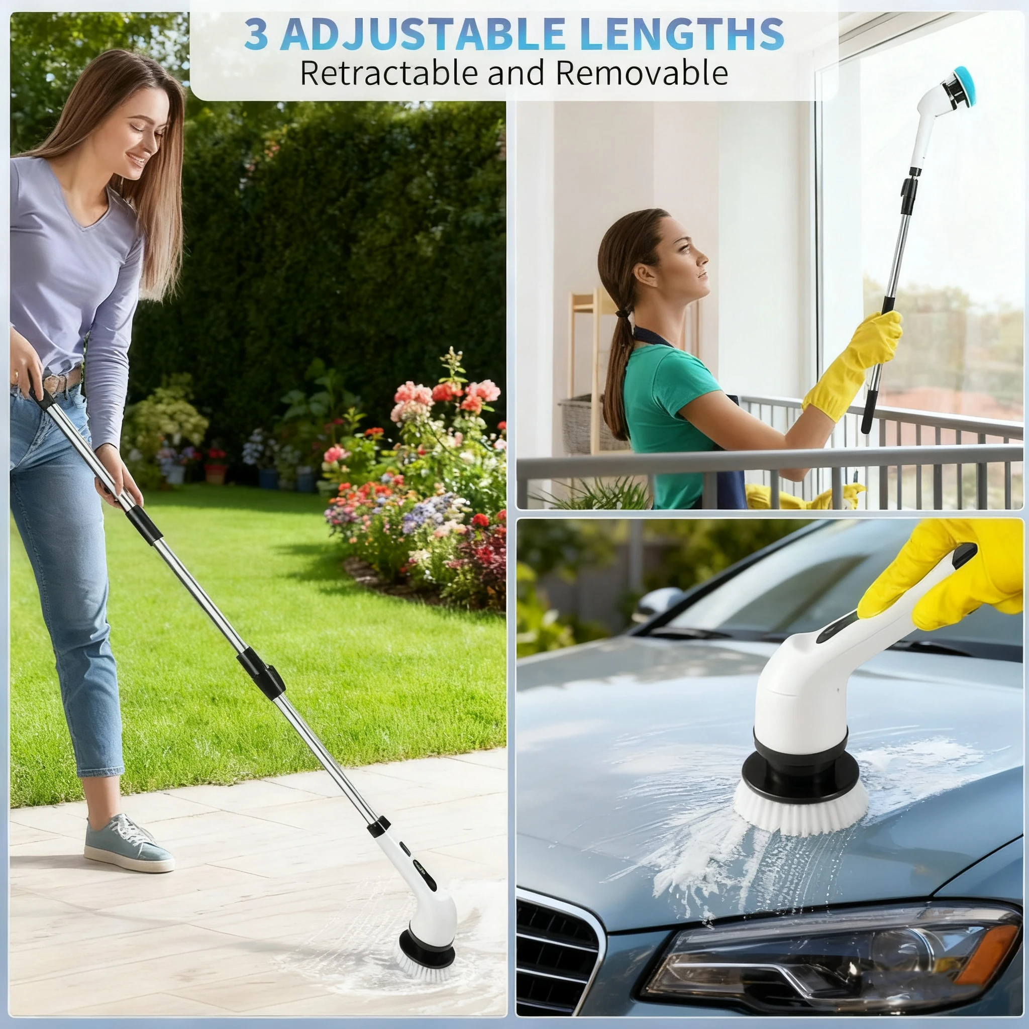 📏 Extendable Stainless Steel Handle: Adjustable from 24.8" to 47.3", making it easy to clean hard-to-reach areas without bending—great for users of all ages.