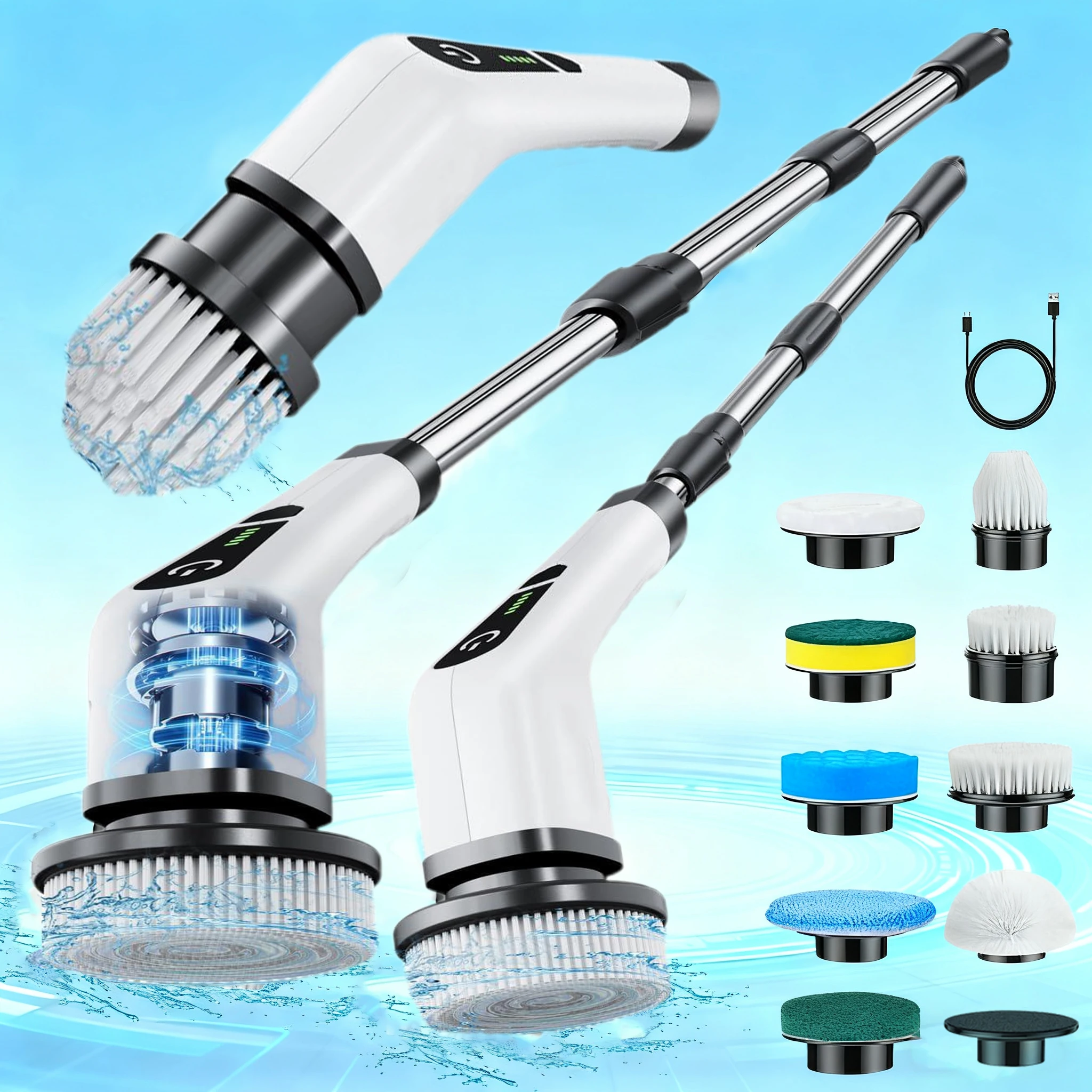 🔄 9 Replaceable Brush Heads: Includes a full set of heads for multi-surface cleaning—from tiles, bathtubs, and sinks to stovetops, grout, and car interiors. Scratch-free and effective on every surface.