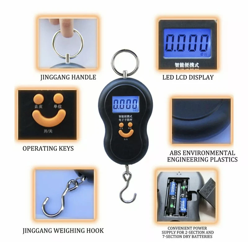Electronic 50Kg 10g Hanging LCD Digital Scale Fishing Weights Pocket Luggage Scale laboratory teaching+2 AAA Battery