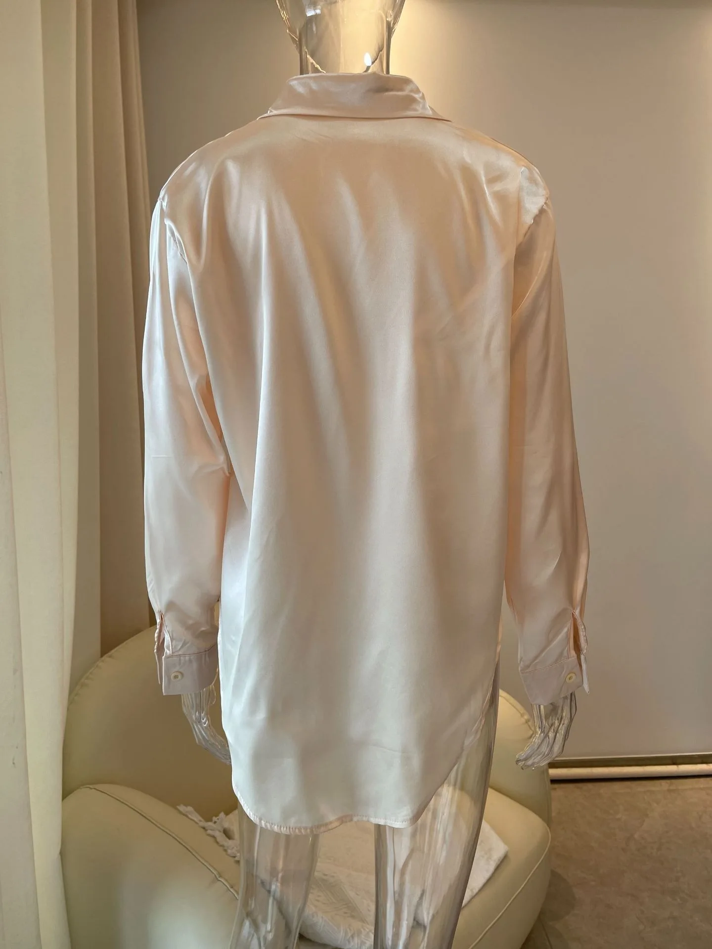 Elegant Women’s Satin Shirt Blouse New Print V-neck Swing Neck Long-sleeved Solid Color Loose Shirt Casual Top Office Ladies