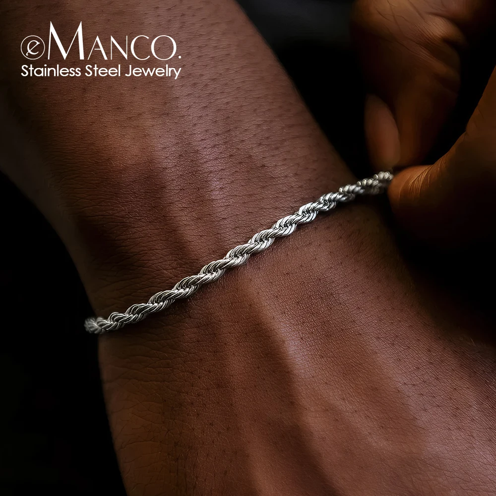 eManco 2/3/4/5MM Twisted Rope Chian Bracelet for Woman Man Hip Hop Punk Silver Color Stainless Steel Fashion Jewelry
