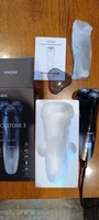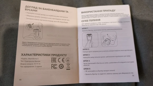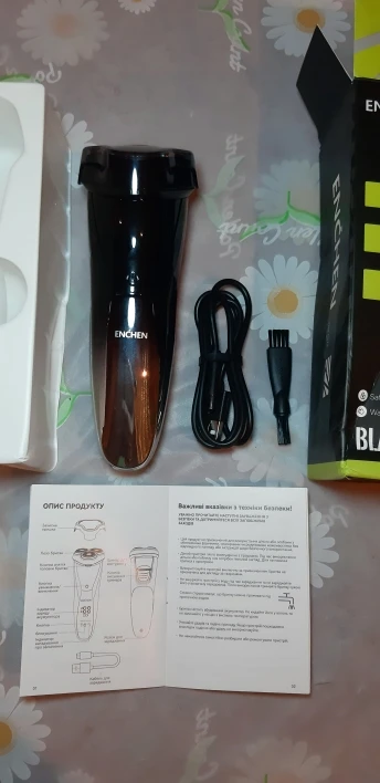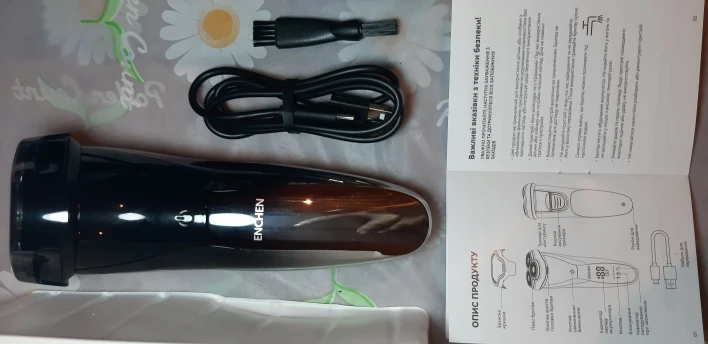 looks much better than in the seller’s photo, reliable packaging, presentable. shaves smoothly (if the situation is not activated), there is a display with the charge level, there is a plastic cap for the blades, a charging cable, a cleaning brush, there is a lock mode, there is also a trimmer for sideburns, and brothers and sisters, appreciate: the instruction in Ukrainian (!) quite decent (even though they don’t shave)