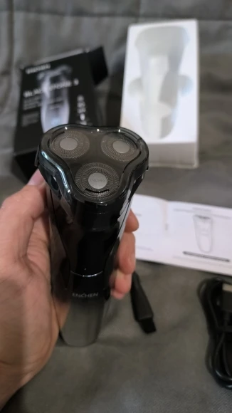 Thank you to the seller for the fast delivery and quality product. The razor arrived on time, fully equipped, charger cord, electric razor, cleaning brush, user manual. Everything works, charged 98% out of the box, the box is slightly dented and the product itself is intact, the trimmer works. You can shave both with foam and gel, as well as normally on moisturized skin with warm water. Suitable as a quick option for shaving, convenient and a very good alternative to a machine. Indication, the lock for securing is working.