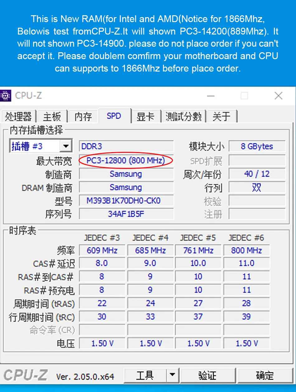 For 1866Mhz, Below is test from CPU-Z. It will shown PC3-14200(889Mhz). It will not shown PC3-14900.