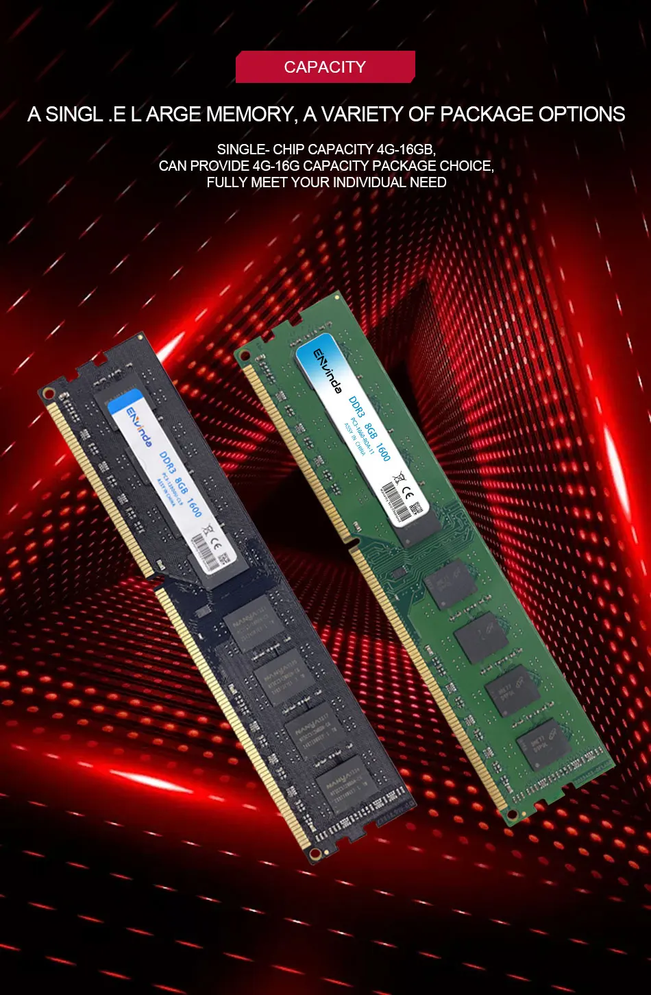 8GB 4GB DDR3 (DDR3=1333MHz /1600MHz /1866MHz),CAS Latency:1333MHz=CL9 1600MHz=CL11 ,Original Chips,For HY SEC ELP MIC…