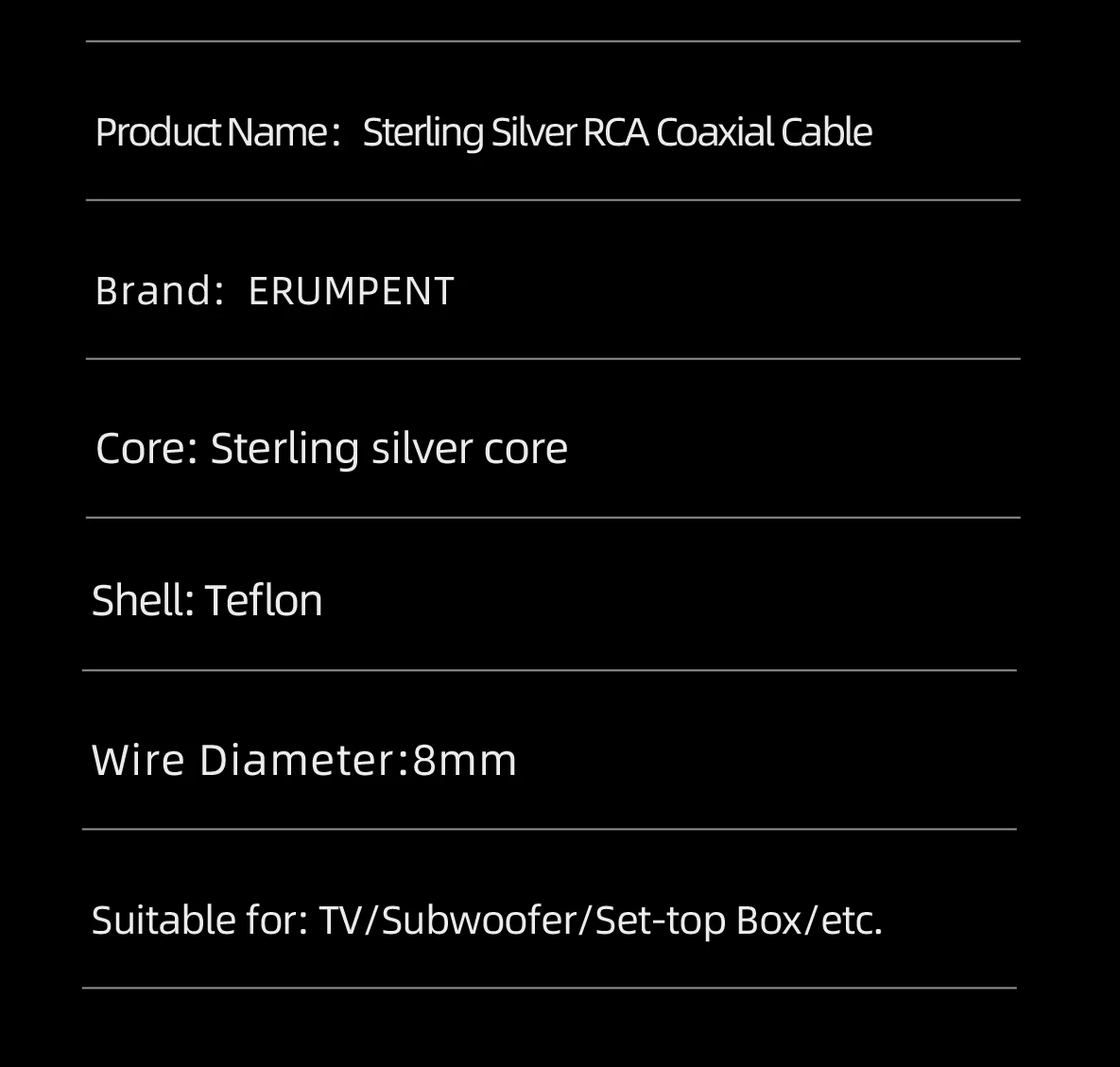 18 reviews for ERUMPENT 75Ohms Sterling Silver Professional RCA Digital Coaxial Cable Self-locking RCA Audio Cable for DAC Home Theater TV