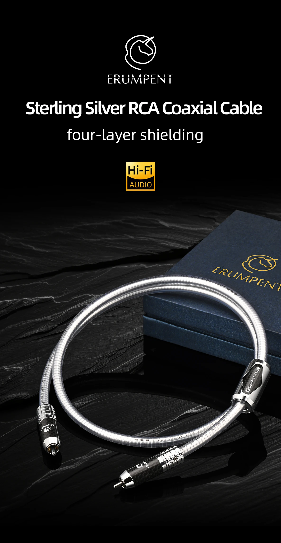 ERUMPENT 75Ohms Sterling Silver Professional RCA Digital Coaxial Cable Self-locking RCA Audio Cable for DAC Home Theater TV