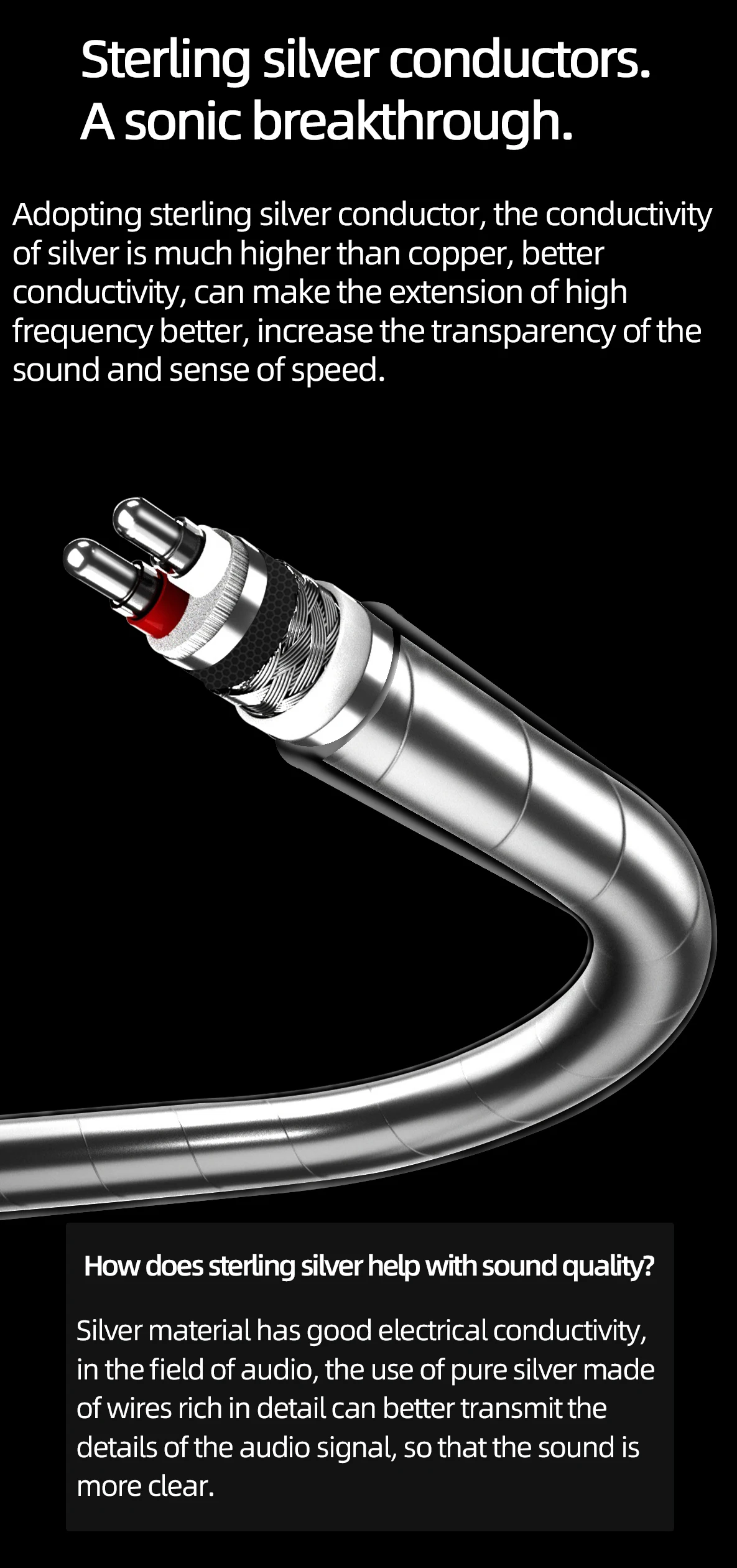 The cable is really high quality, beautiful, real sterling silver and sounds great.